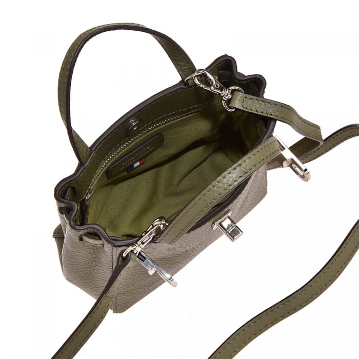 Mini sac crossover en cuir grainé doté d’un fermoir tourniquet. Fermeture bouton-pression et poche intérieure zippée. Bandoulière amovible.