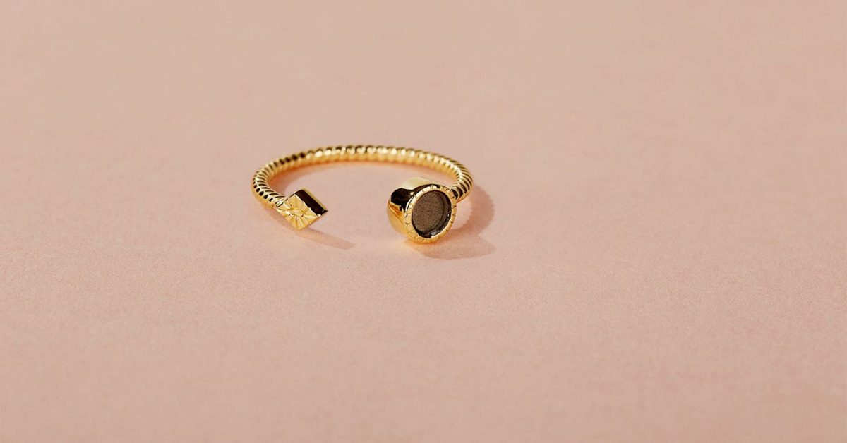 Cette bague est fabriquée à la main en laiton doré à l’or fin 18K et sertie d’une turquoise. Bague ouverte à l’avant, taille ajustable.
