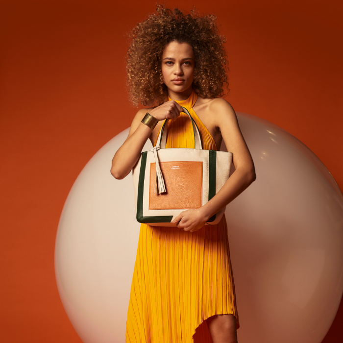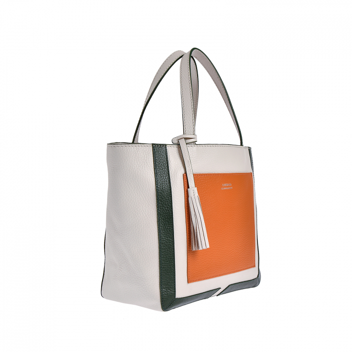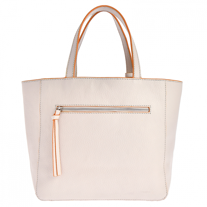 Cabas medium en cuir grainé habillé d’une poche frontale contrastée.