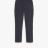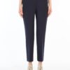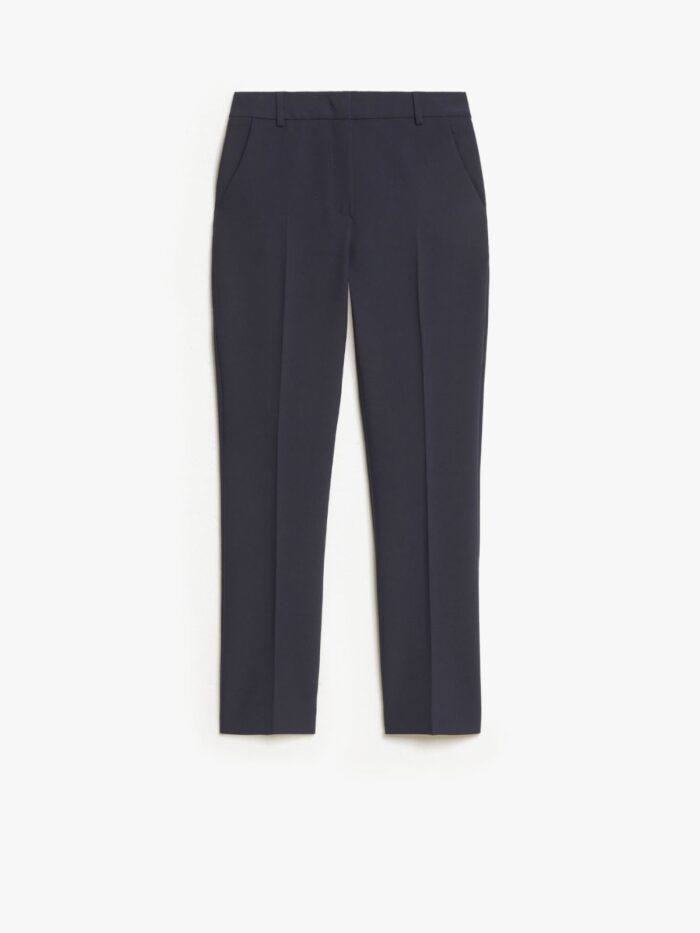 Cigarette trousers in elegant viscose cady fabric featuring belt loops and pressed pleat detail on the leg. The ankle-length model boasts slant side pockets and buttoned welt rear pockets. High-cut waistband and a fly-covered zip and hook-and-bar fastening.