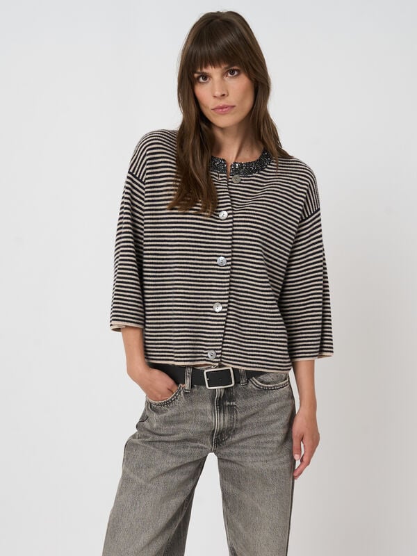 Cardigan En Cachemire Rayé Orné De Paillettes – REPEAT