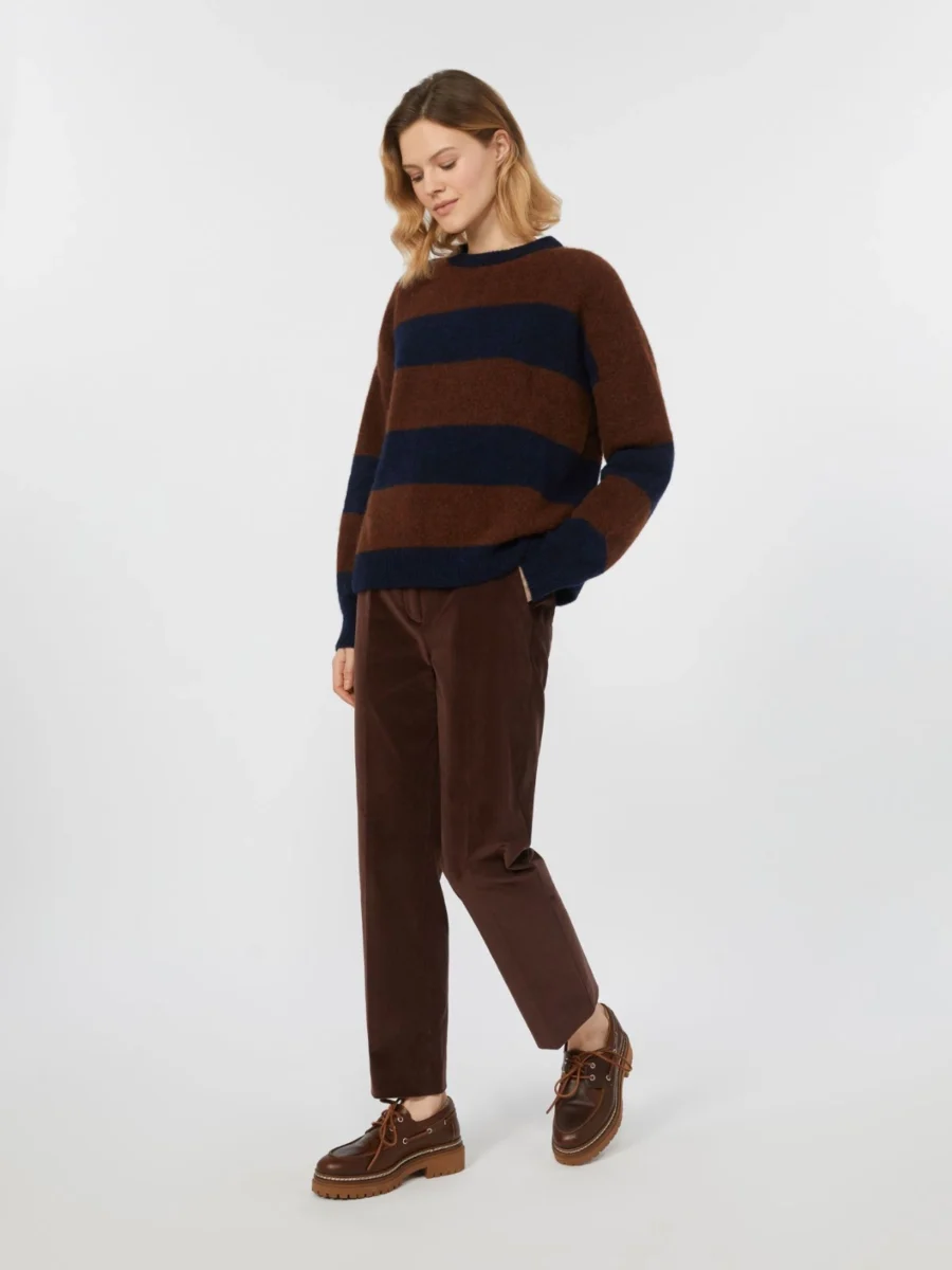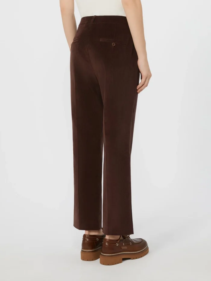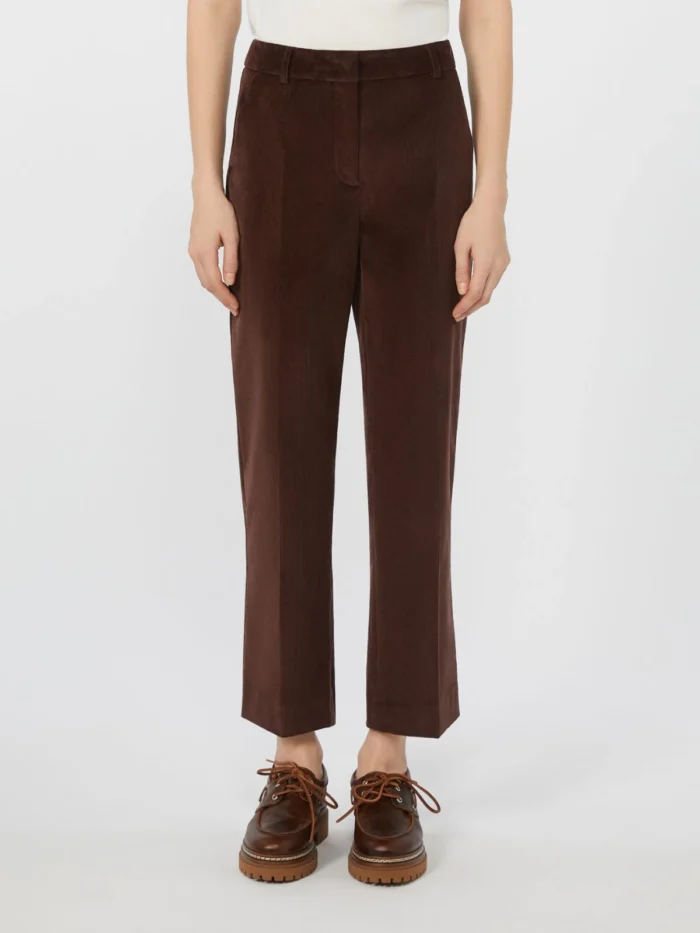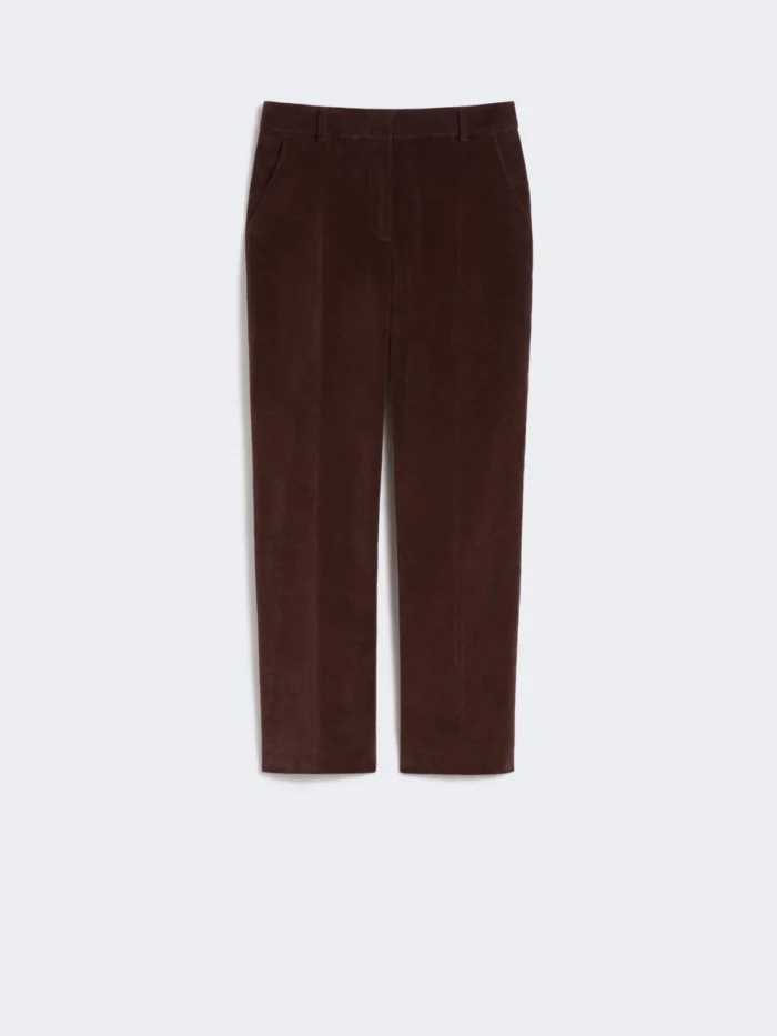 Ribbed trousers featuring a slim-fit silhouette cropped at the ankle.