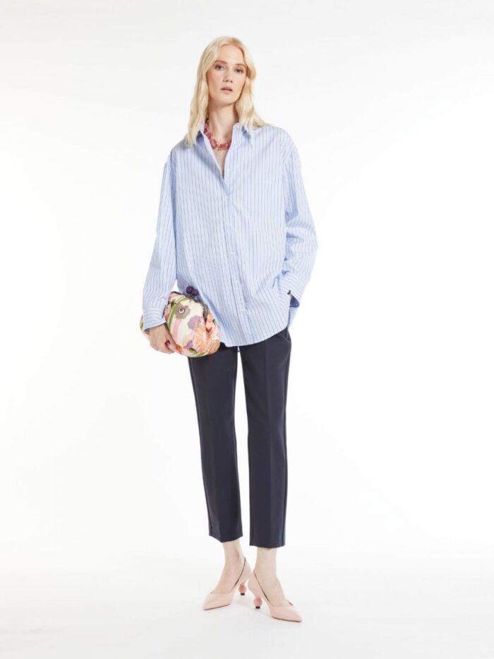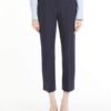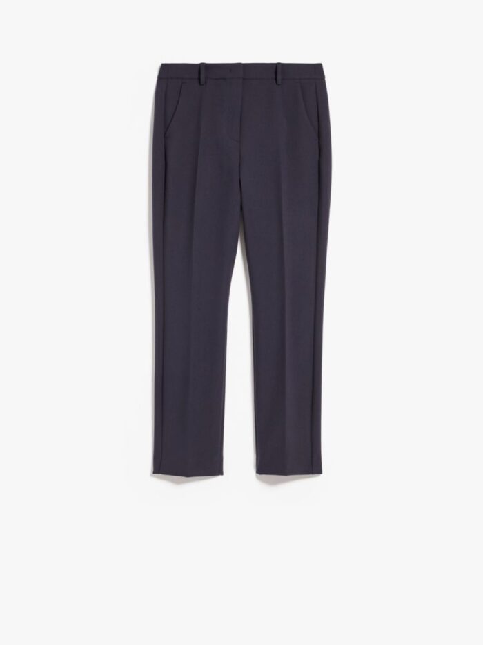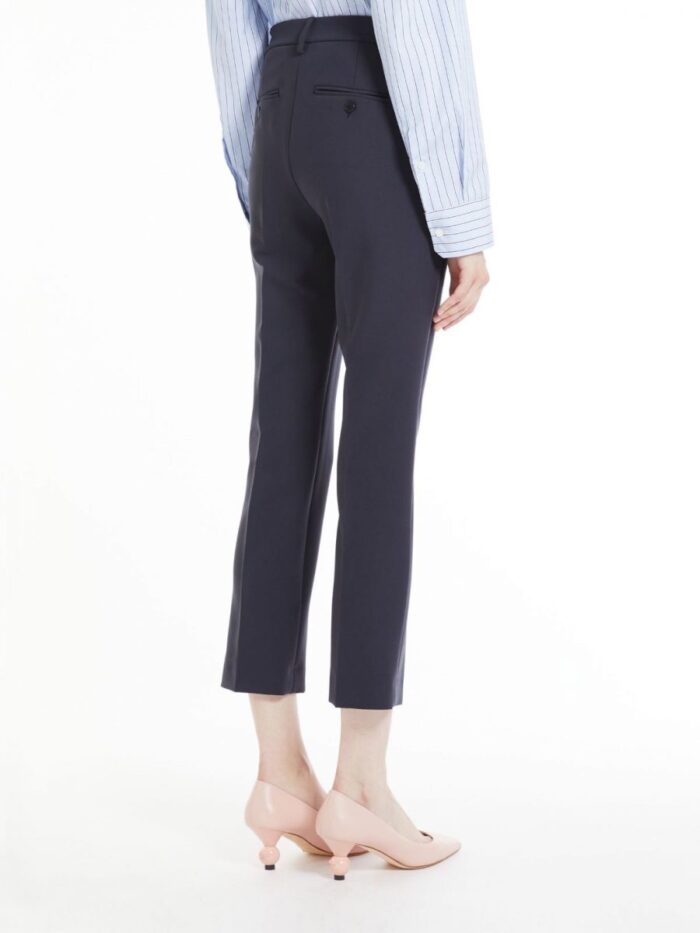 Classic, straight-fit cropped trousers in double-faced two-way stretch viscose-blend cloth featuring pressed pleat detail. The model boasts slant side pockets and buttoned welt rear pockets. Fly-covered zip and hook-and-bar fastening.