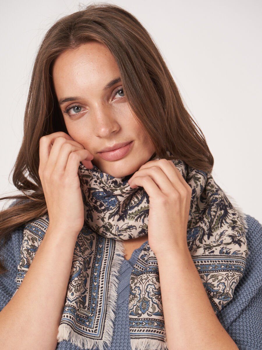 Echarpe carrée en modal cachemire avec imprimé floral, matcha – REPEAT