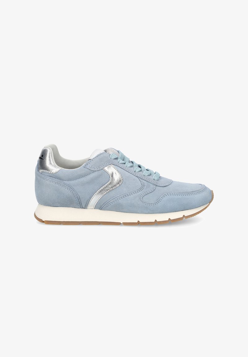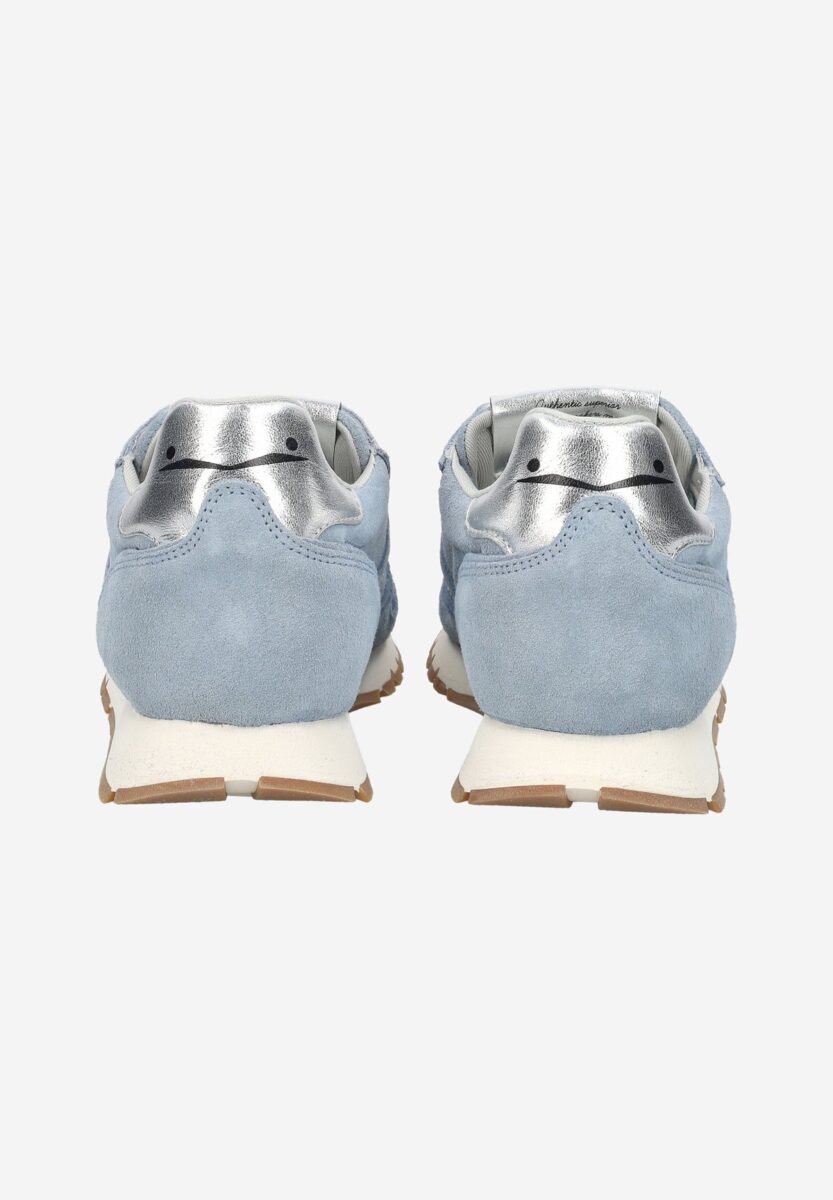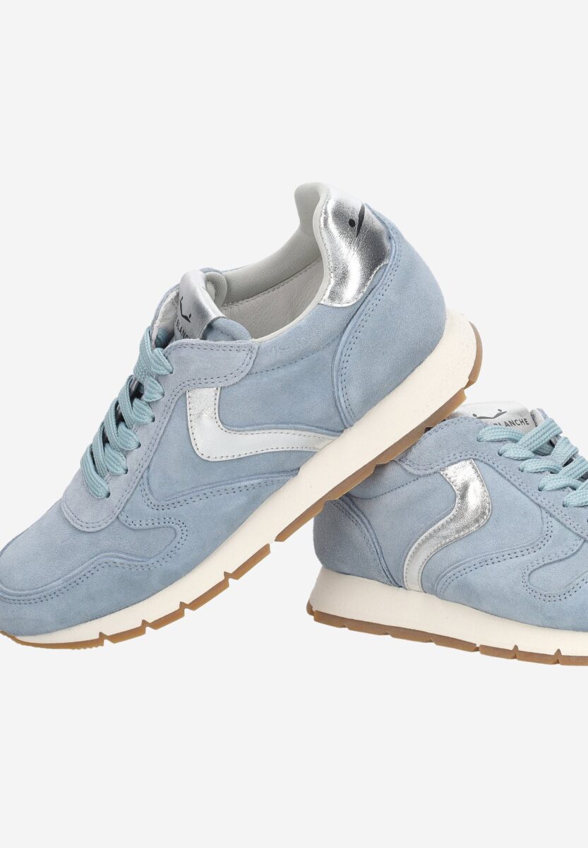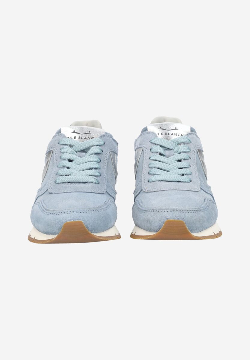 Casual city chic: new trainer in soft suede lit by the leather side slash. The lines are inspired by vintage models, with on-tone inserts and a contrasting heel tab decorated with a logo. Anatomical insole and contrasting rubber running sole.