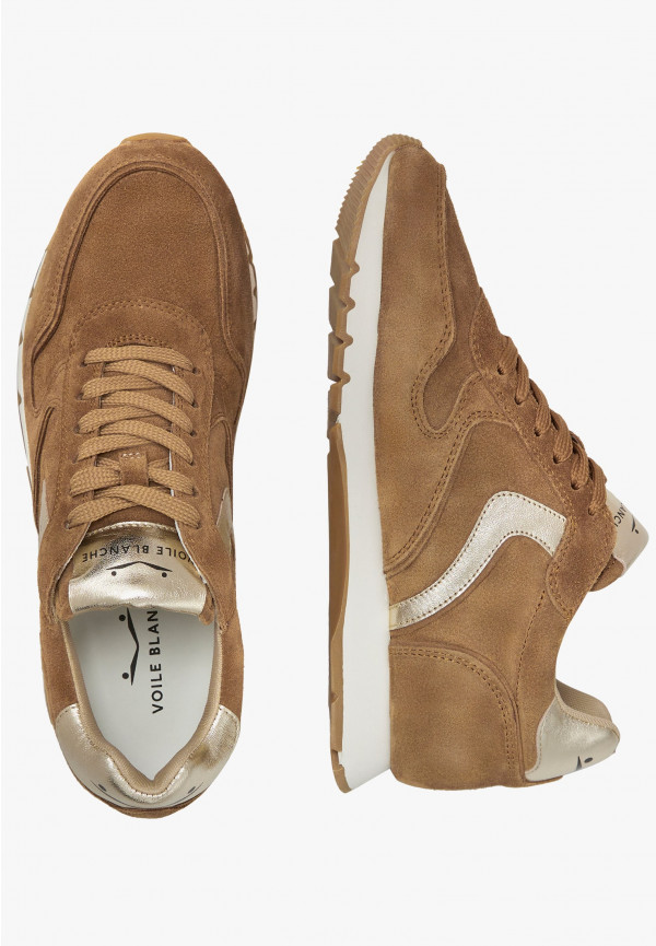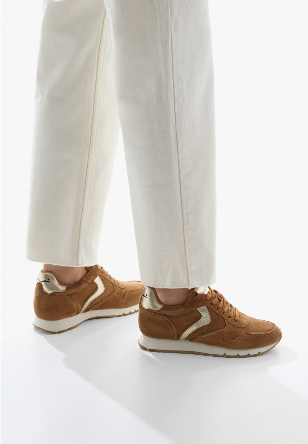 Julia leather and suede sneakers, cognac platinum – VOILE BLANCHE