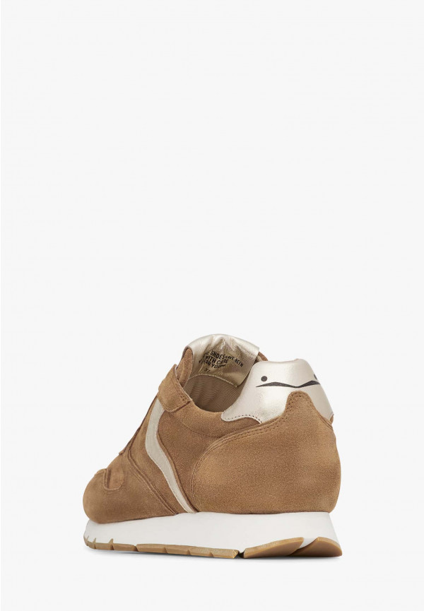Casual city chic: new trainer in soft suede lit by the golden glow of the leather side slash. The lines are inspired by vintage models, with on-tone inserts and a contrasting heel tab decorated with a logo. Anatomical insole and contrasting rubber running sole.