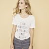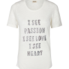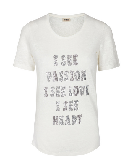 Teeshirt manches courtes, col rond évasé. Inscription en strass argent, forme fit.