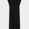 Long sleeveless dress worked in Milan stitch and featuring a straight silhouette.