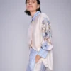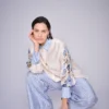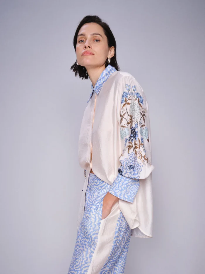 Turn heads with this standout shirt, crafted in a relaxed silhouette with a button closure and striking floral detailing on the sleeves. It’s finished with a contrasting collar and cuffs in a vibrant floral print. Wear it with the matching pants or blue jeans to highlight the blue hues in the design.