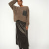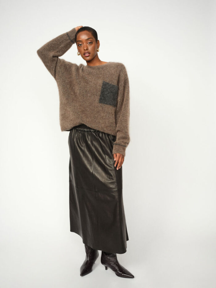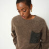 This cosy knit sweater is crafted with a soft, hairy texture, offering a relaxed and effortless fit. The classic O-neck adds timeless appeal, while the contrast-coloured chest pocket brings a contemporary twist. Style it with denim or tailored trousers for a chic yet casual ensemble.