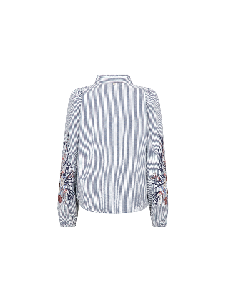 A classic cotton shirt with intricate embroidery on the sleeves for a feminine twist. Designed with a timeless silhouette, button front, and soft fabric that offers both structure and ease – perfect for dressing up or down.