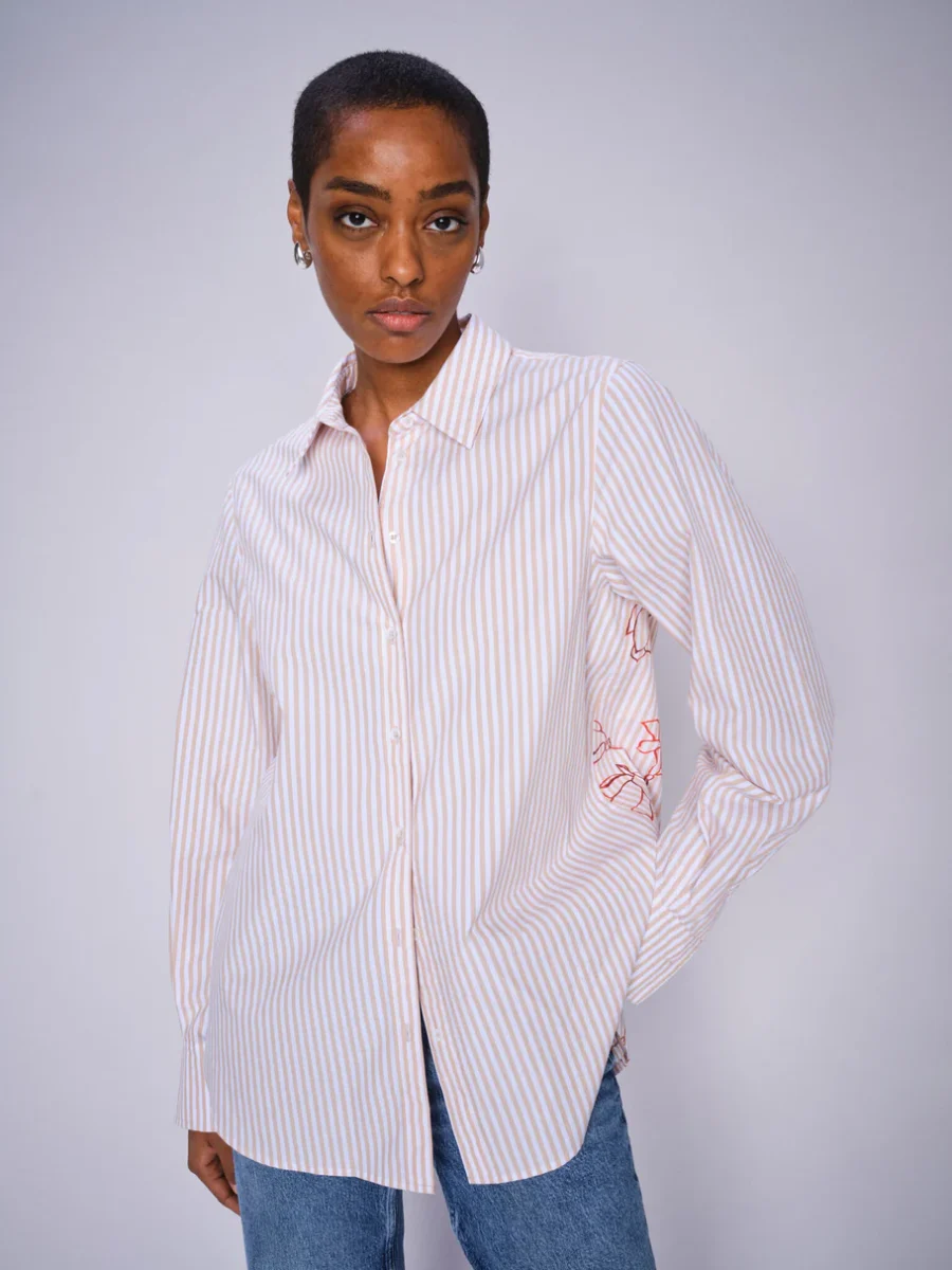 Add a touch of artistry to your style with this oversized organic cotton shirt. Featuring a classic button closure, pointy collar, and buttoned cuffs, it’s elevated by a hand-painted floral print on the back and a bias-cut yoke for a unique twist. Pair it with wide-leg denim for an effortlessly cool look.