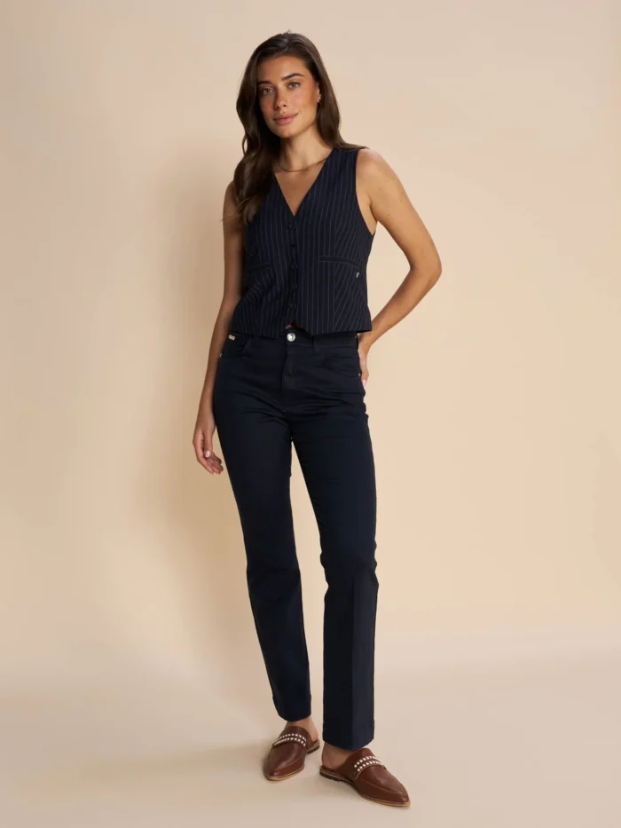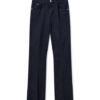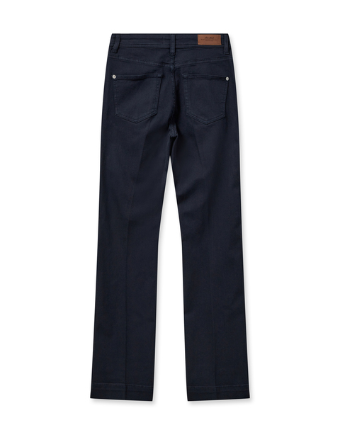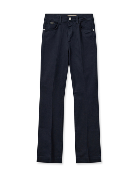 Step into effortless elegance with these chic pants that has a flattering flare fit and a high waist, all while being crafted from comfortable, stretchy cotton. The attention to detail shines through with the brown leather badge at the back and the tone-in-tone stitching, adding a touch of sophistication. Perfect for any occasion, these pants pair beautifully with flowy blouses, statement tees, and tailored blazers to create a versatile and stylish ensemble.
