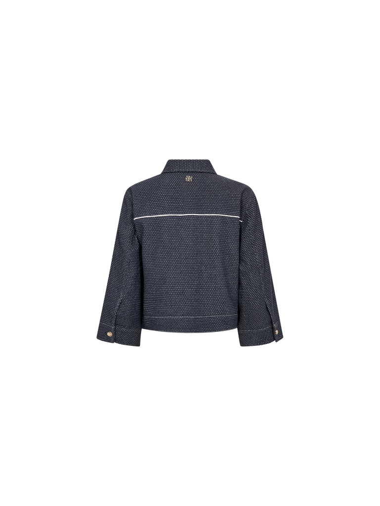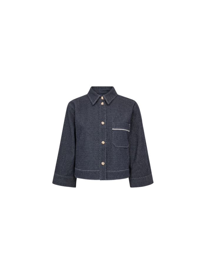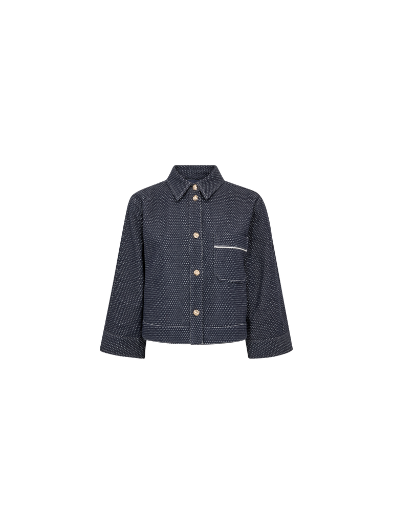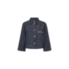 A chic take on a classic workwear silhouette, this jacket is crafted from structured cotton jacquard with subtle texture and contrast stitching. Designed in a relaxed fit with a classic collar, cropped length, and three-quarter sleeves. Detailed with front buttons and a single chest pocket for a timeless yet modern expression. Pair it with matching trousers or denim for a coordinated look that feels effortlessly cool.