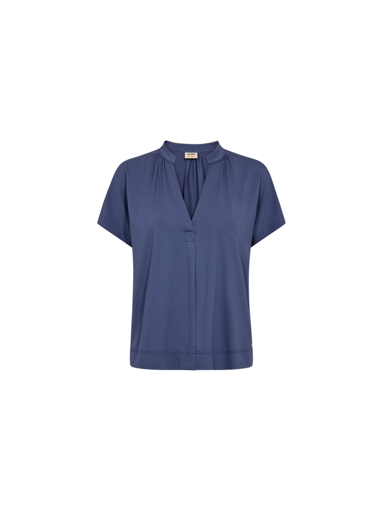 Elevate your wardrobe with this sophisticated tee. Crafted from luxurious viscose, its loose silhouette has a flattering v-neck that exudes timeless charm. The soft pleats are a lovely detail, allowing you to effortlessly style it with jeans, a denim skirt, or even tailored pieces, reflecting your impeccable taste.