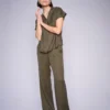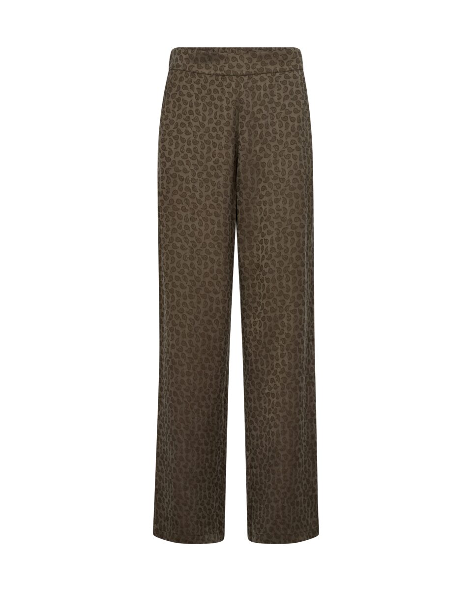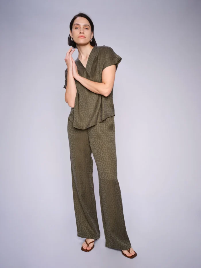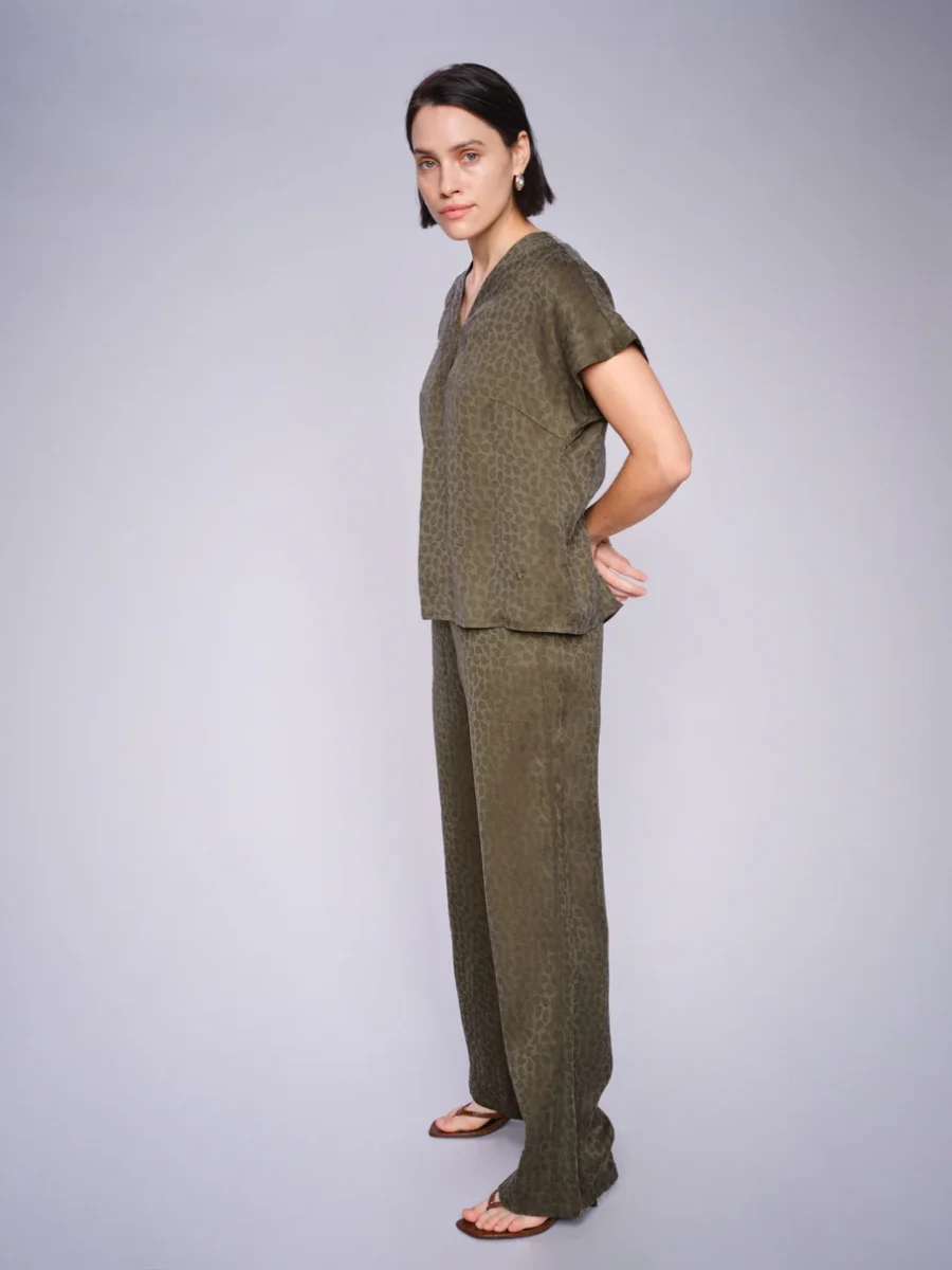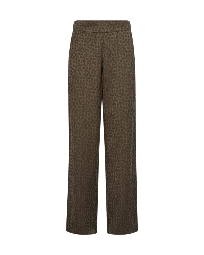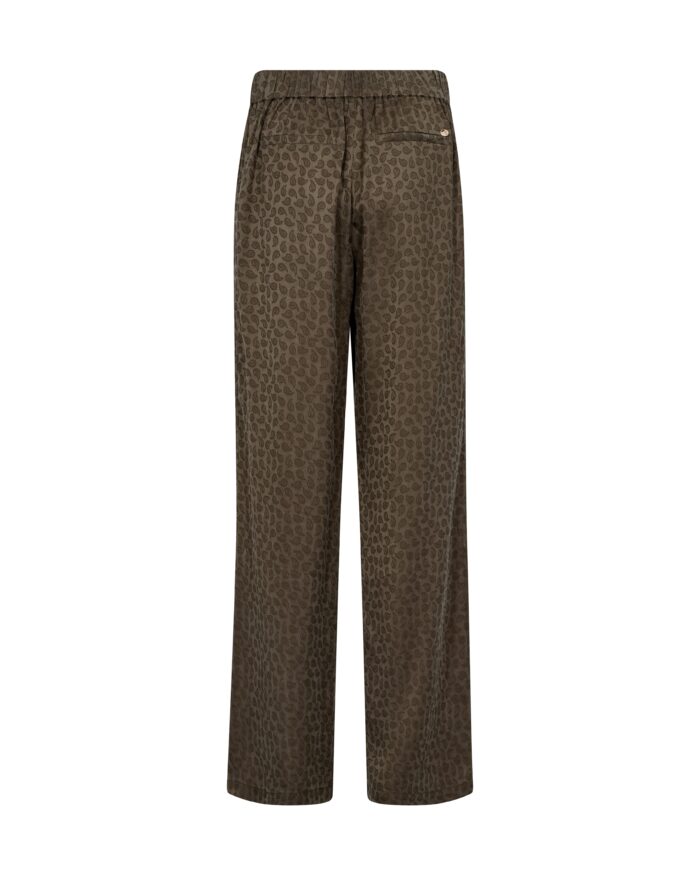 Elevate your wardrobe with these elegant jacquard pants, designed to flatter with a wide-legged silhouette and a mid/high-rise waist adorned in a stunning tone-in-tone leaf print. Crafted from a smooth, lightweight lyocell and viscose blend, they showcase a beautiful matte and shiny finish. Featuring a sleek front and an elasticated waistband at the back, these pants offer both style and comfort. Pair them with a flowy, feminine blouse to embrace a graceful bohemian vibe.