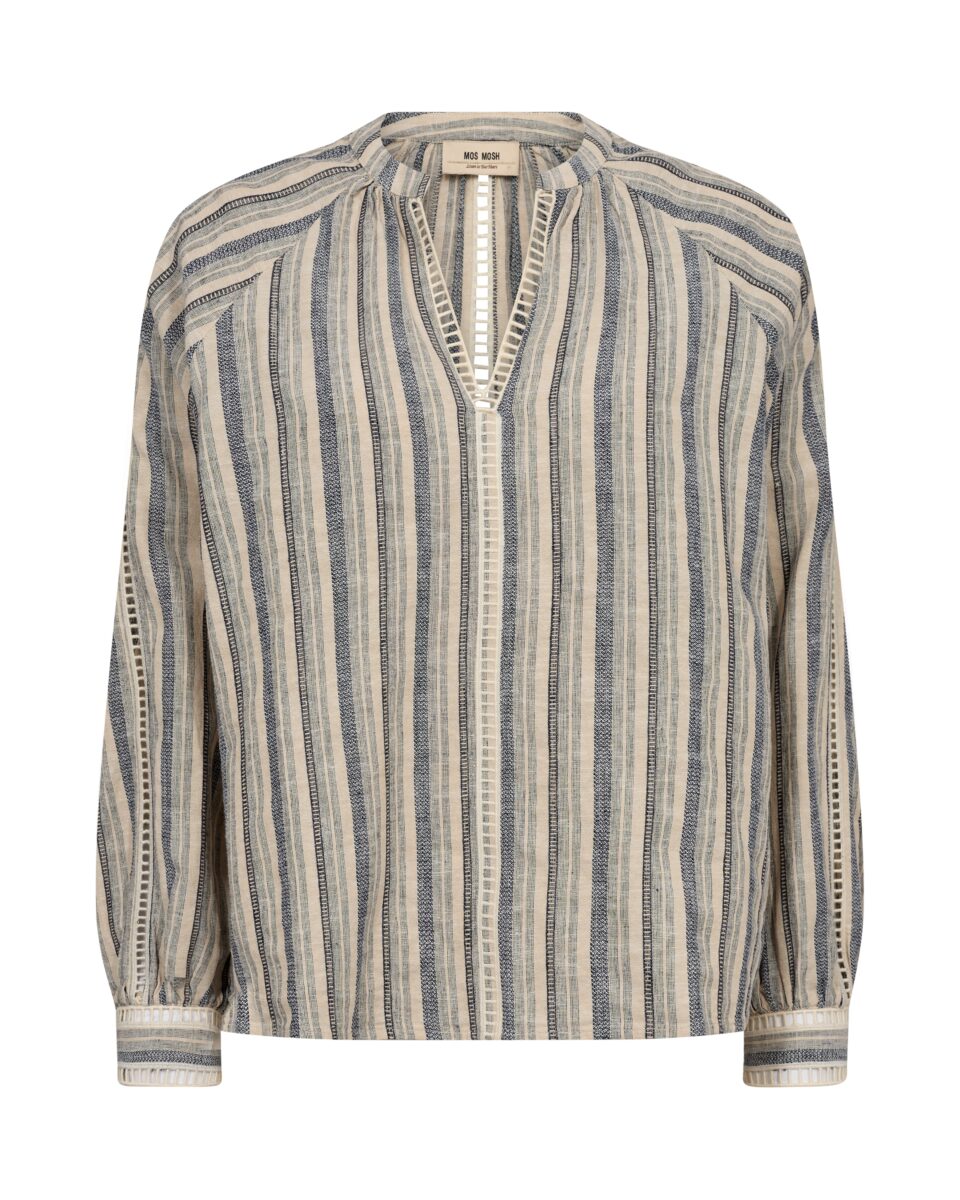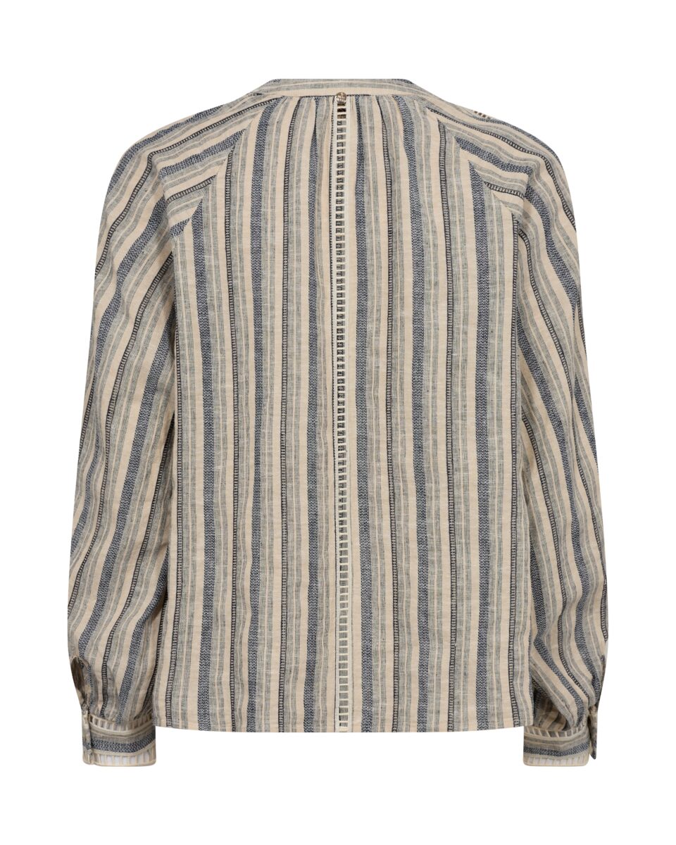 Embrace boho charm with this feminine cotton-linen blouse, crafted in a loose silhouette. Featuring ladder tape details along the neckline, front, sleeves, and back, its textured, washed finish gives an embroidered effect. Style it with wide-leg light blue jeans for an effortlessly chic look.
