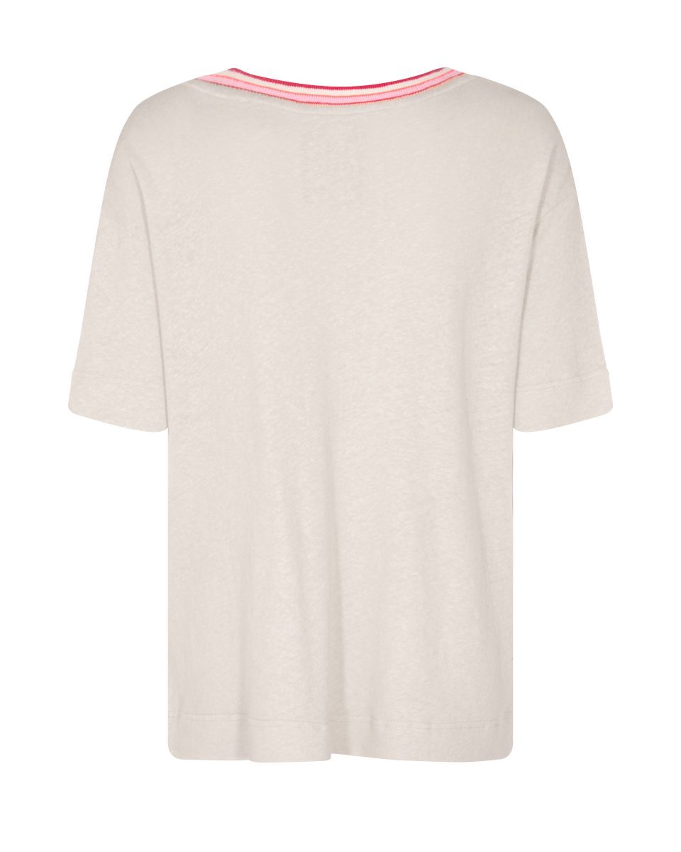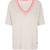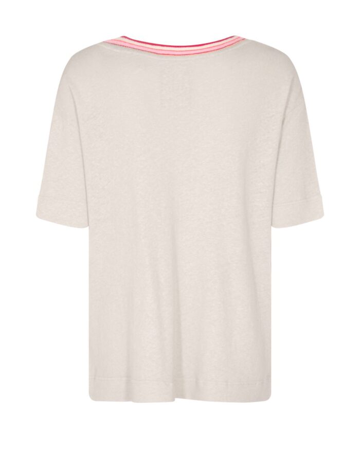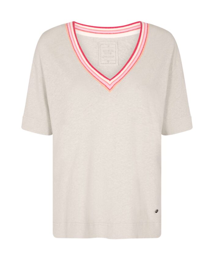 V Tee designed in a slightly loose silhouette and crafted from a cotton-linen blend. It’s finished with striped rib details at the neck. We would style it with blue jeans or denim shorts.
