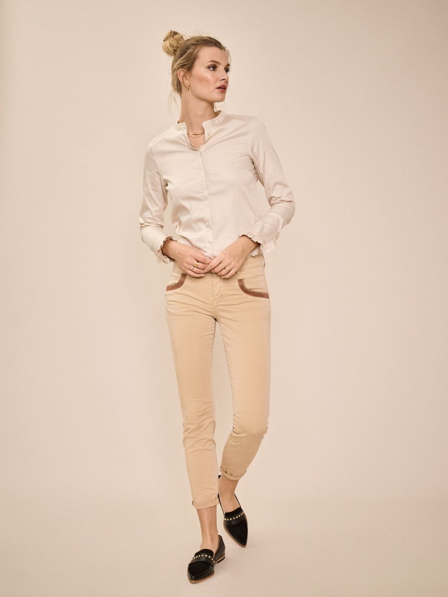 Our beloved Naomi-fit has been made in a new super soft feel. Cut in regular fit with high/mid-rise, that allow you place them sit low on your hip for an edgy twist or pull them up in place for a more put-together look. We added embroidery to the pockets that looks so good with a tucked-in knit and sneakers.
