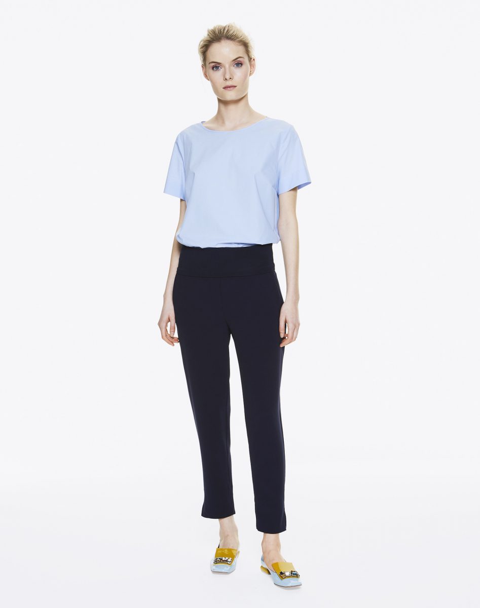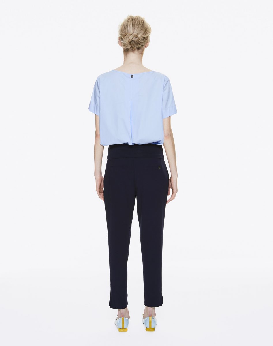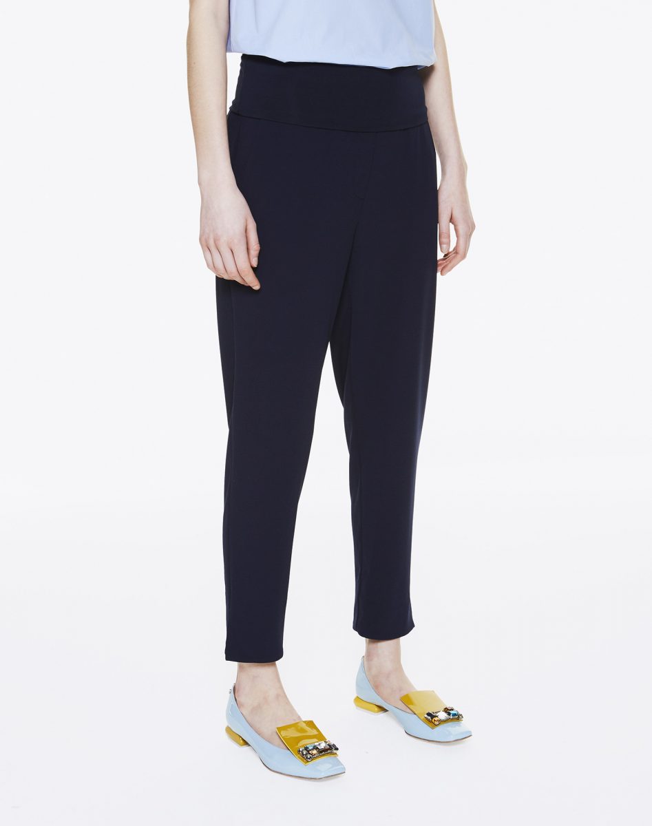 Description : Pantalon cigarette avec bande très confortable sur le ventre mettant parfaitement en valeur la silhouette. Fendu aux chevilles. Le mannequin porte une taille 40 et mesure 177 cm.