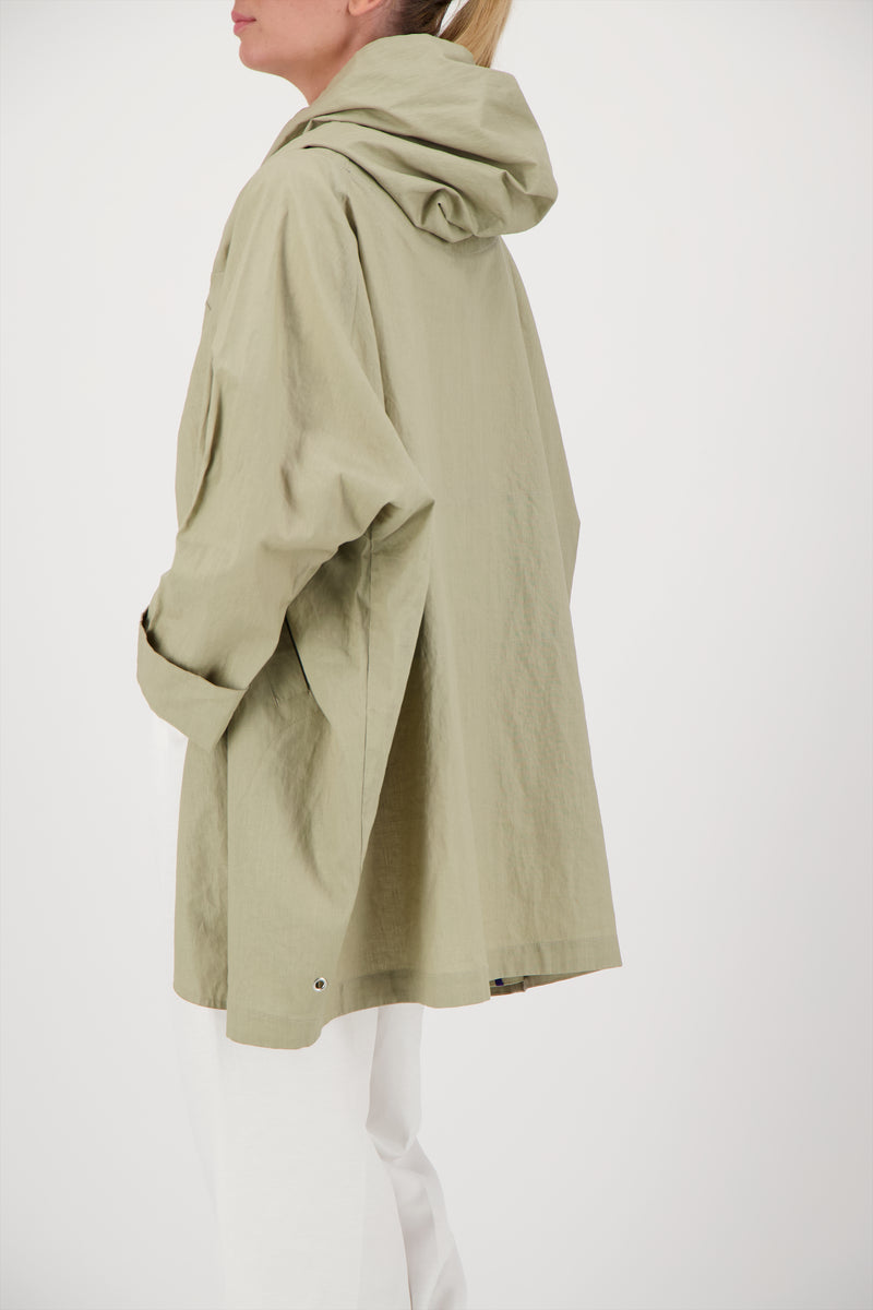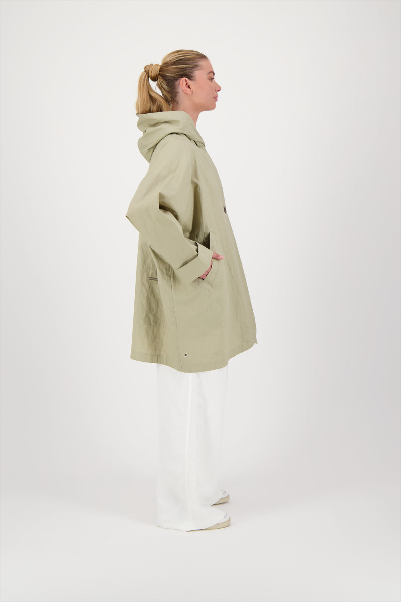 Oversized buttoned parka with hood