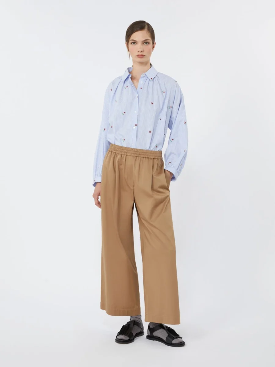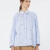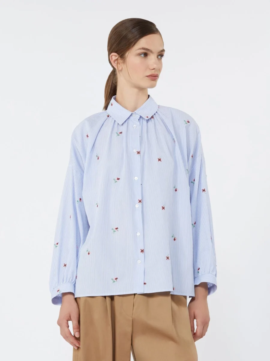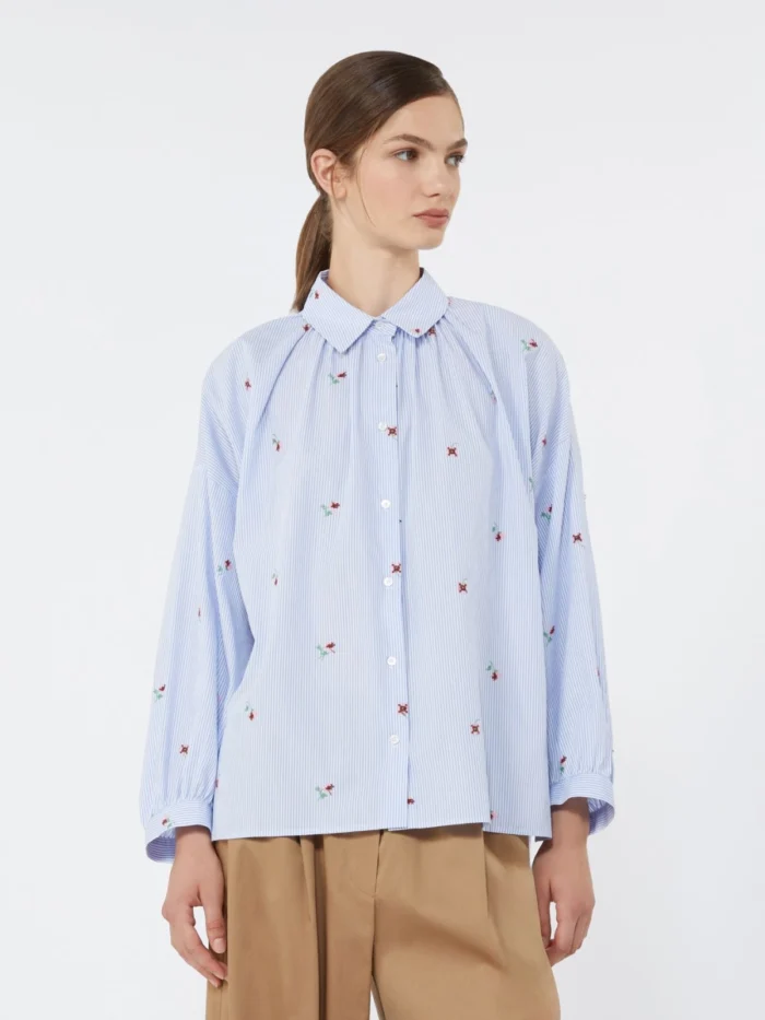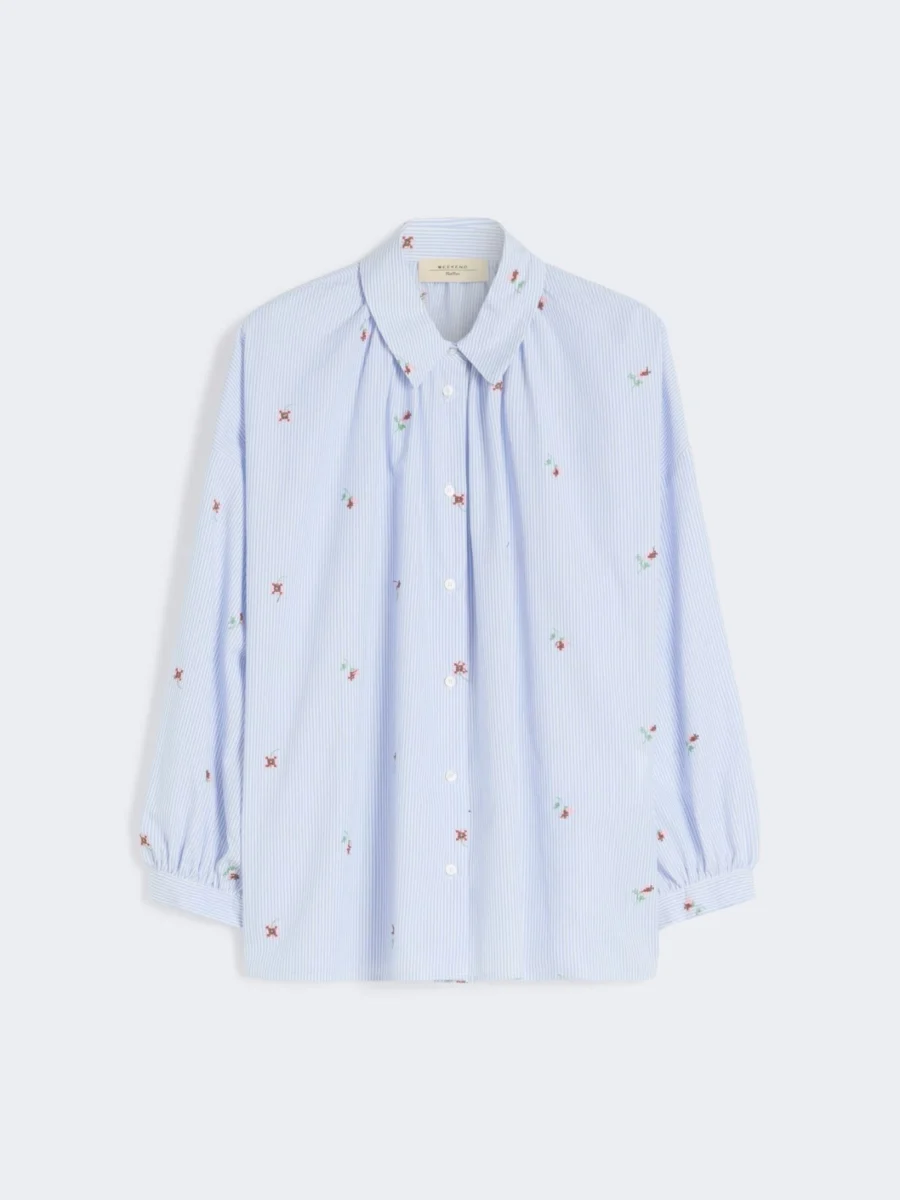Shirt with puffed sleeves, finished with small all-over embroidery and gathered details on the collar and cuffs.