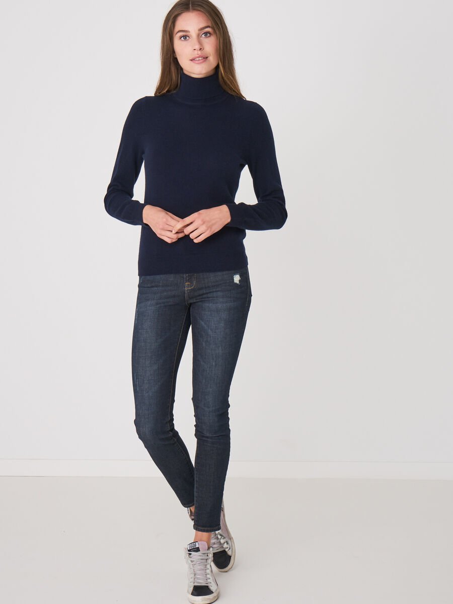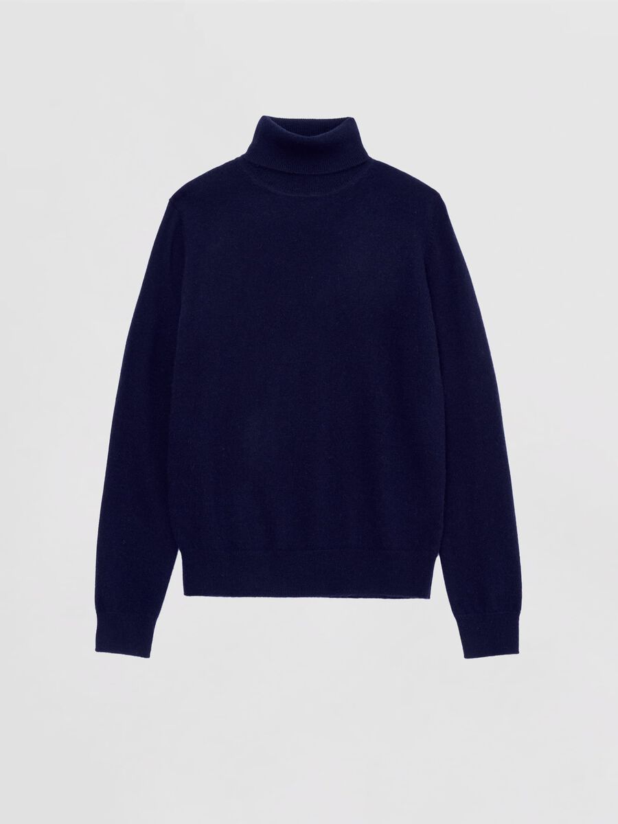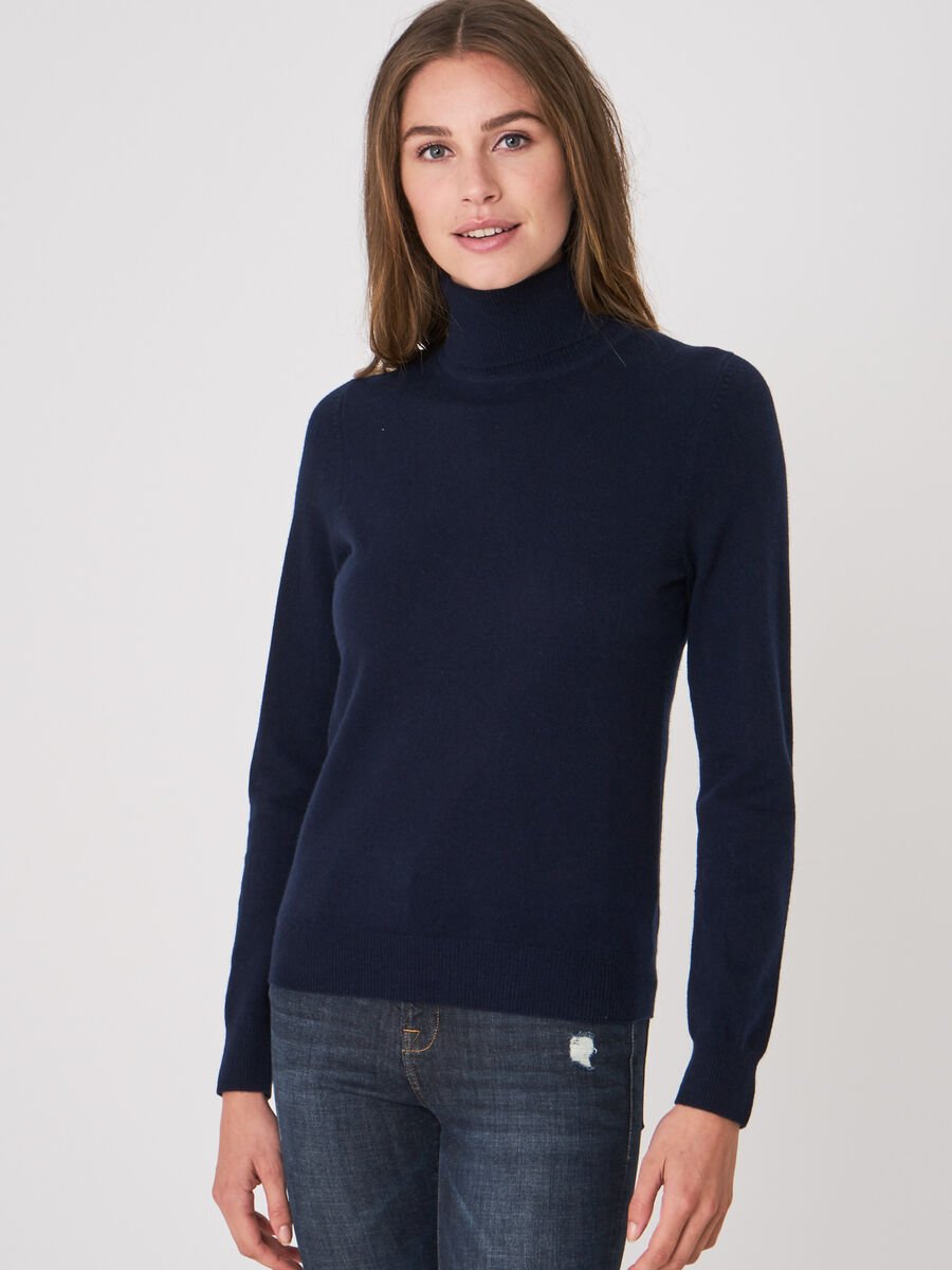 Pull à col roulé en cashmere biologique navy – REPEAT