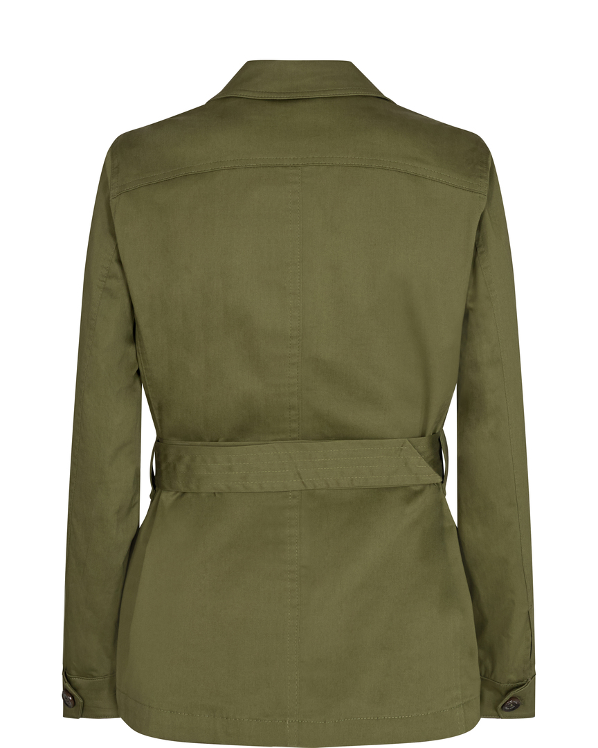 This jacket is the perfect combination of cool utility and flattering feminine. Designed in a soft cotton-blend with wide matching belt to highlight your shape and large front pockets, completing the utility vibes. This looks equally good closed or left open, paired with wide leg pants and suede boots.