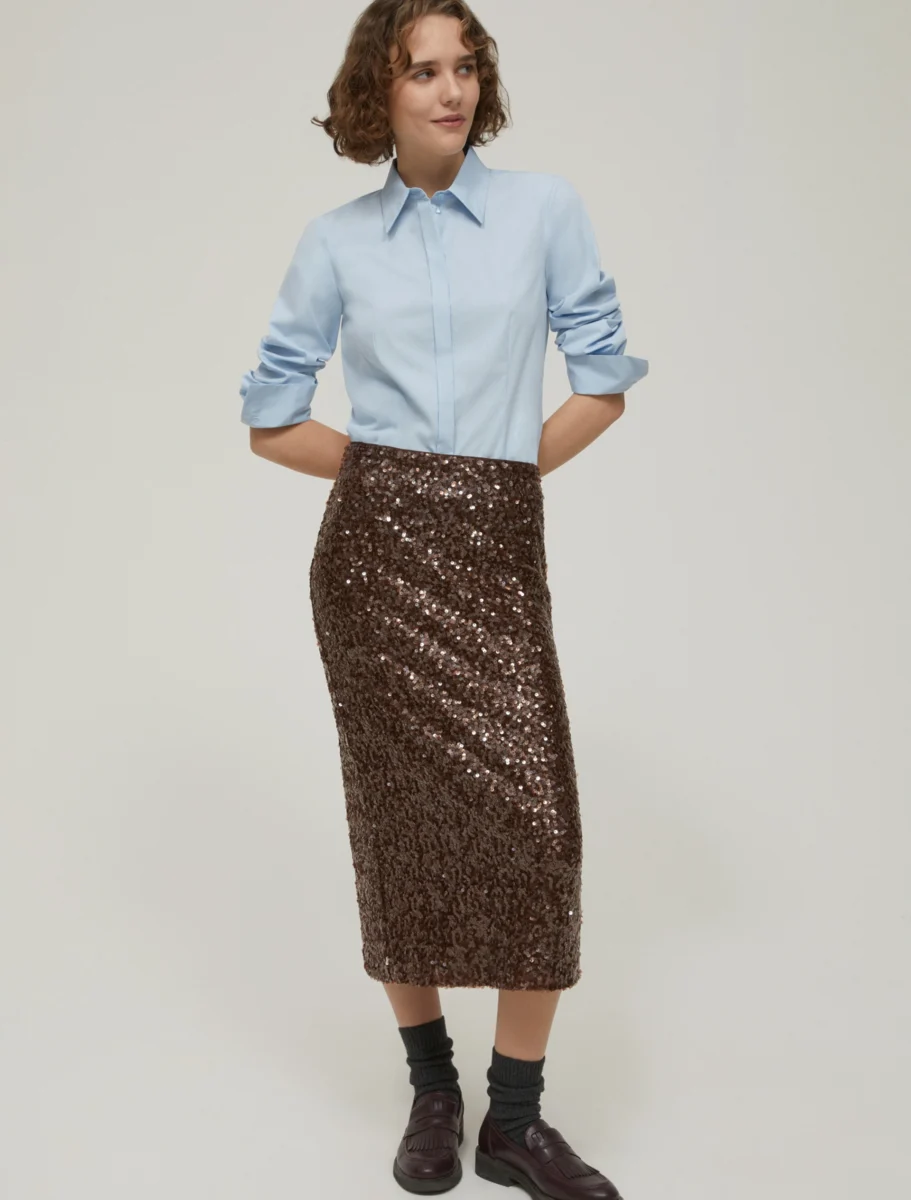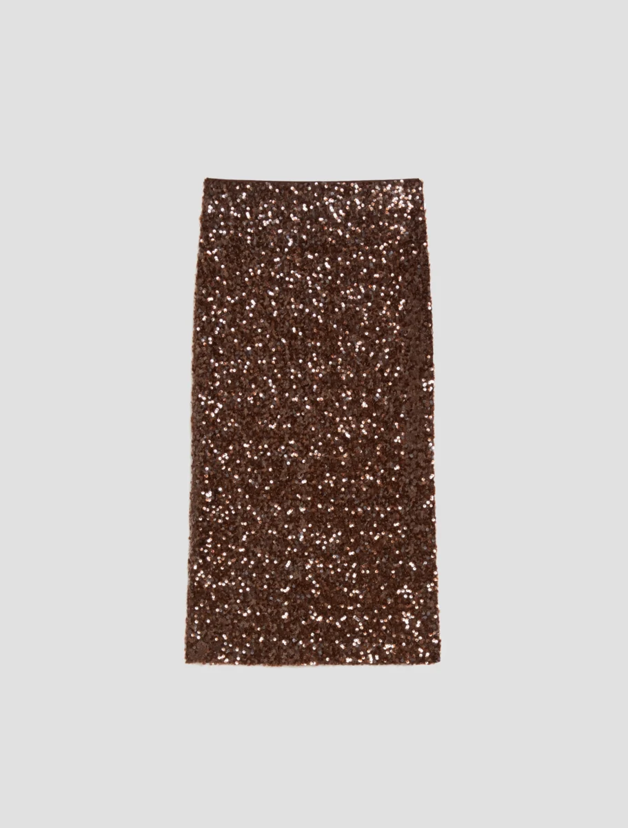 This midi skirt, which features a feminine pencil cut and sparkling sequins, deserves a permanent spot in your evening and party wardrobe. Part of the Glitz ‘n Glam capsule, created with Pupa Milano and coordinated with a make-up line.