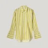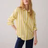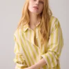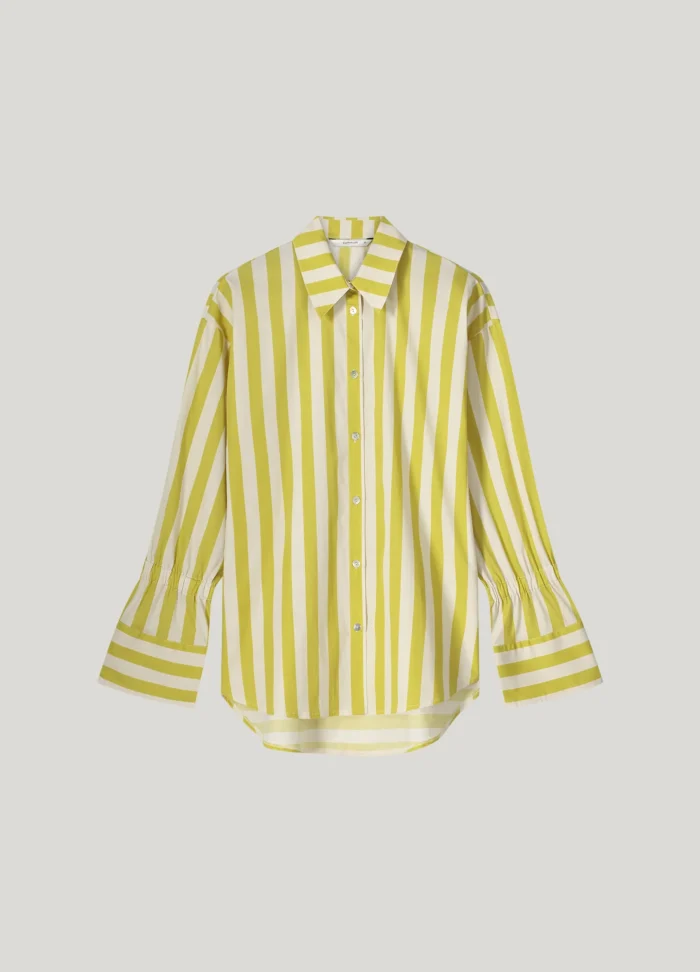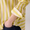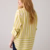 This loose-fitting shirt blouse has wide cuffs and elastic in the lower part of the sleeves, allowing you to wear the sleeves in multiple ways: long, rolled up or folded over. The blouse has a lowered sleeve inset for a casual look. The back is finished with a parting seam in a horizontal and vertical stripe pattern.