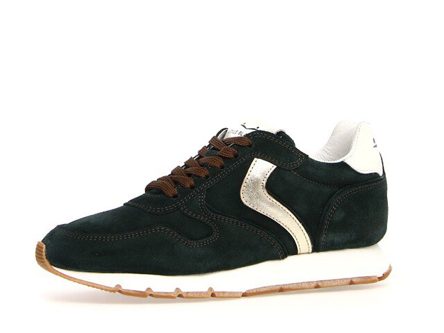 Suede sneaker with silver calfskin details. Anatomical insole and running rubber sole.