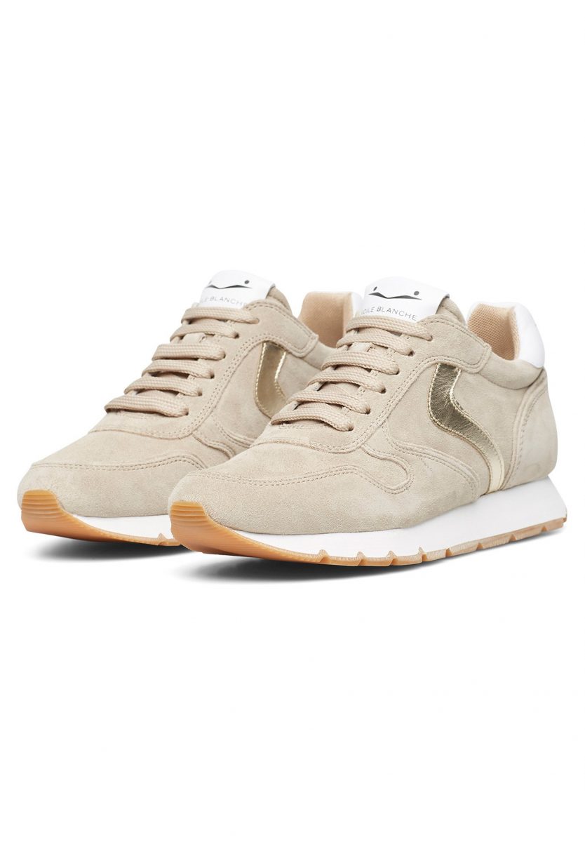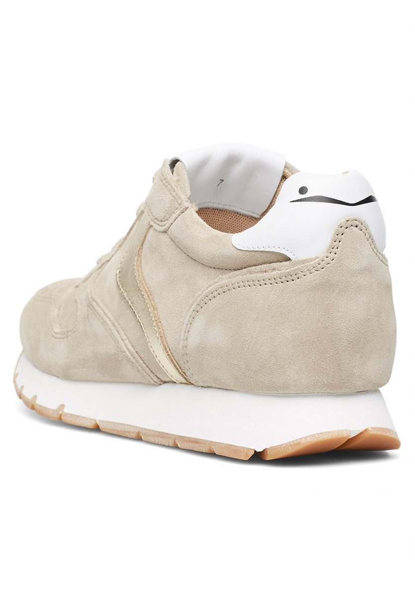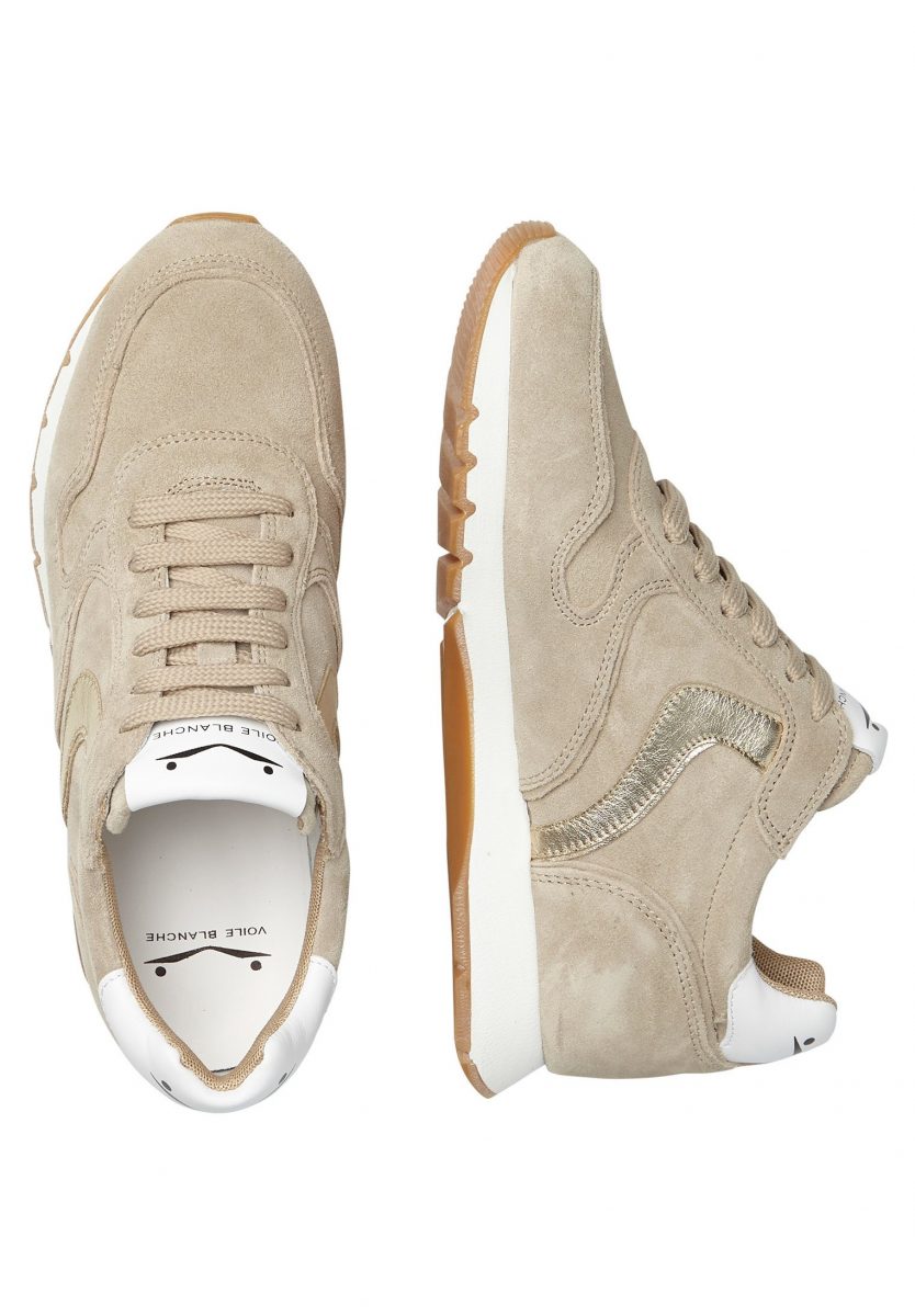 Suede sneaker with silver calfskin details. Anatomical insole and running rubber sole.