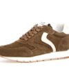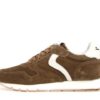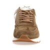 Suede sneaker with white calfskin details. Anatomical insole and running rubber sole.