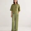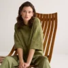 This boxy sweatshirt is made of a soft cotton blend and has wide 3/4 sleeves down to over the elbow. The embellishment of sequins and beads is handmade.
