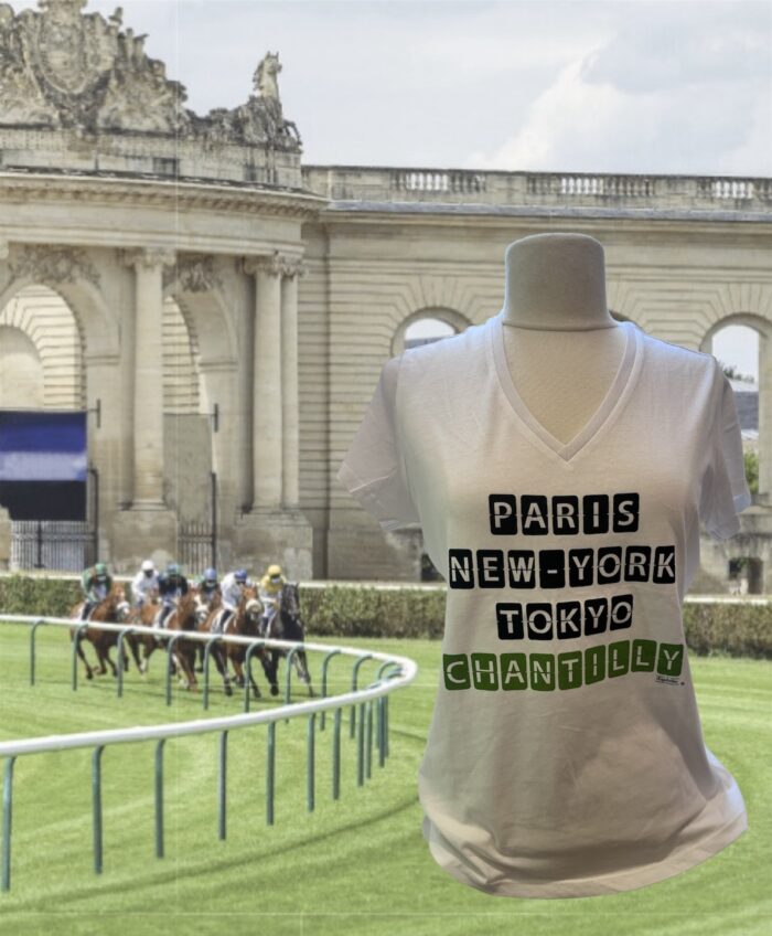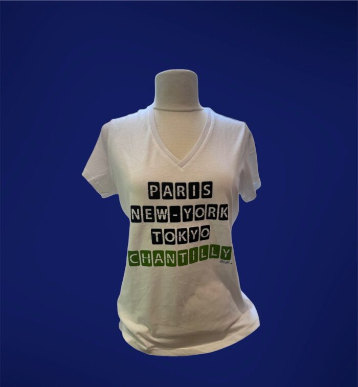 T-shirt en coton biologique. Inscription Paris-NY-Tokyo-Chantilly.