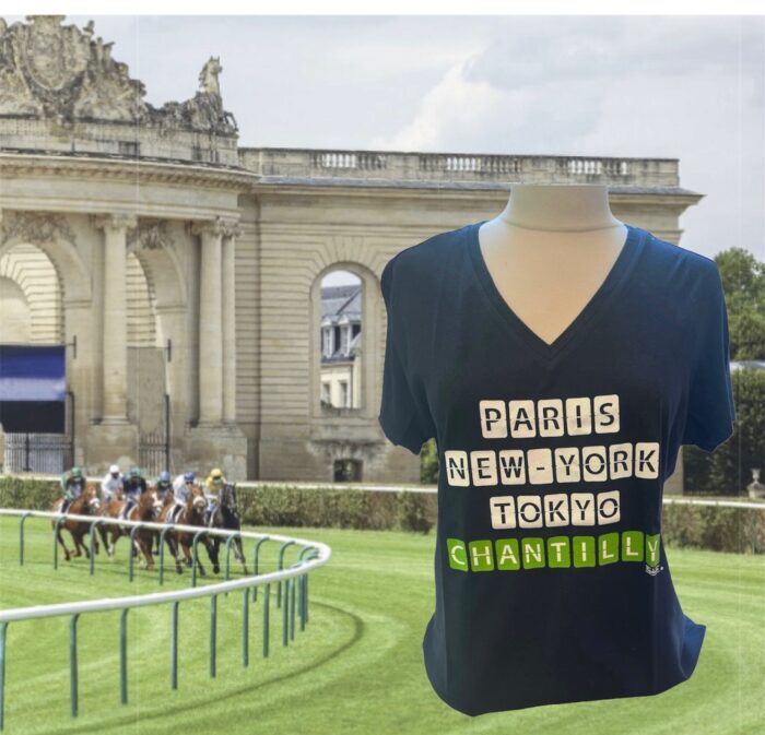 T-SHIRT FEMME PARIS-NY-TOKYO-CHANTILLY bleu