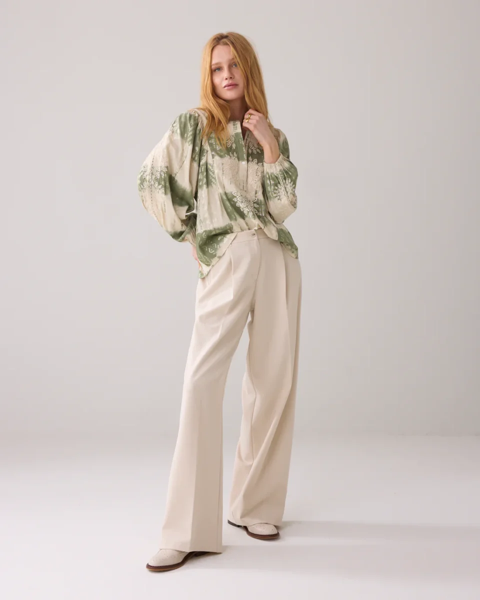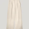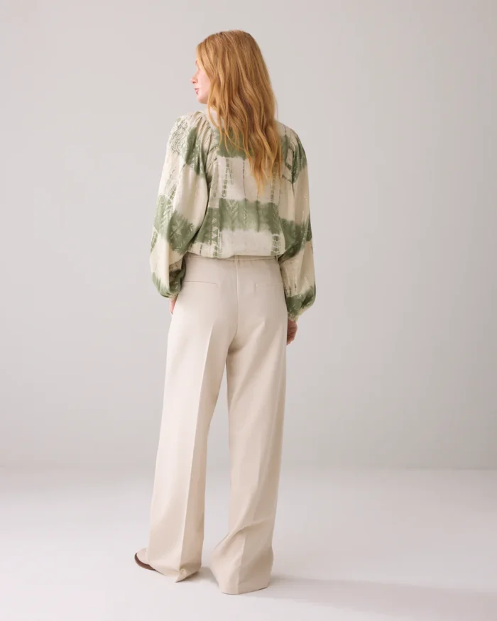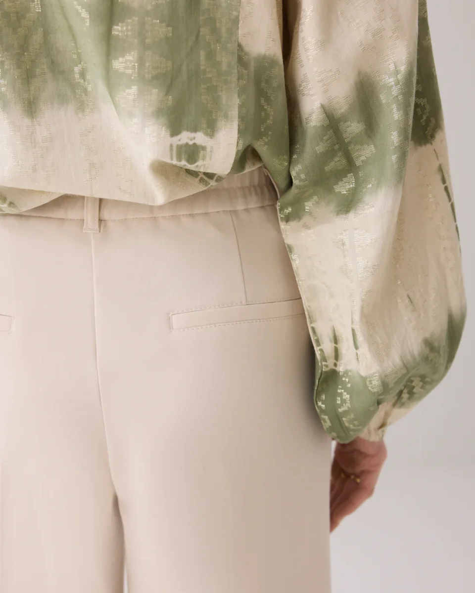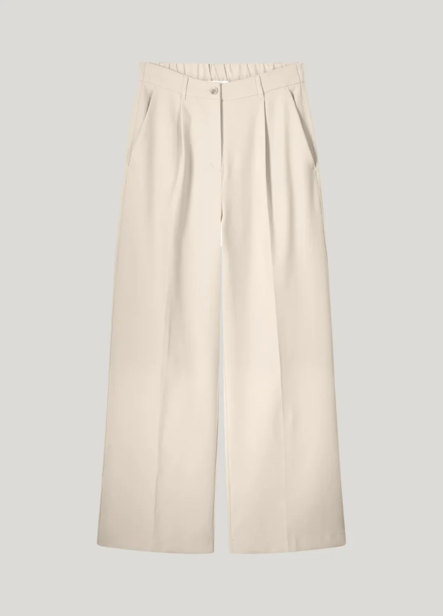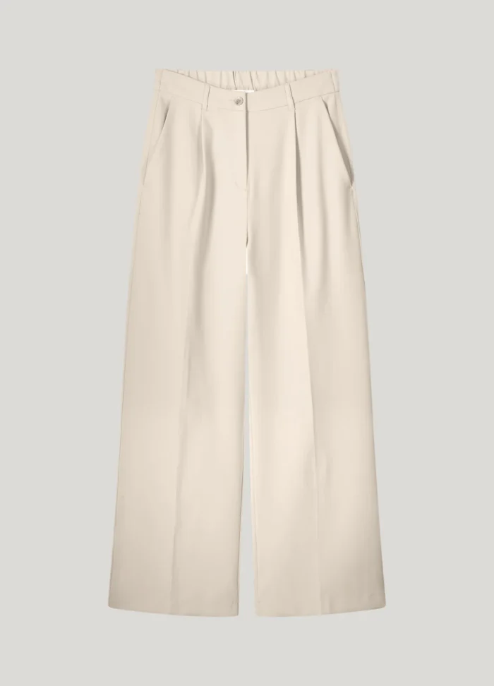 These pleated trousers have wide legs and a press crease at the front. The elasticated back waist ensures a comfortable fit.