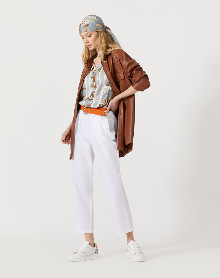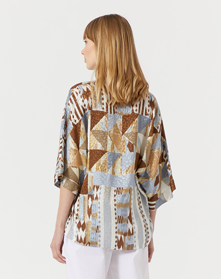 : Viscose Jacquard blouse in ethnic print. Oversize fit.