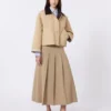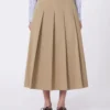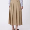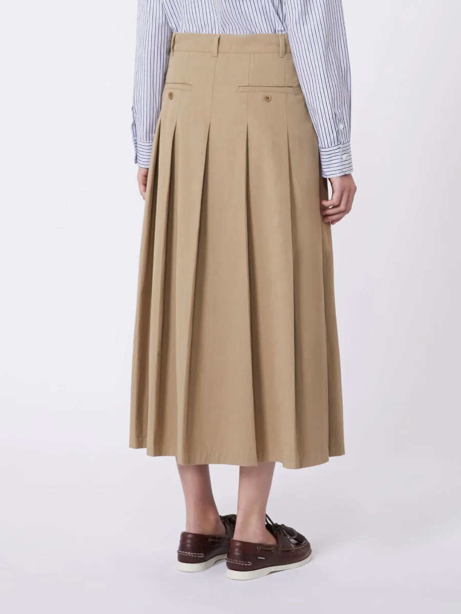 A-line midi skirt featuring pleated panel detail on the front and back.