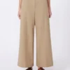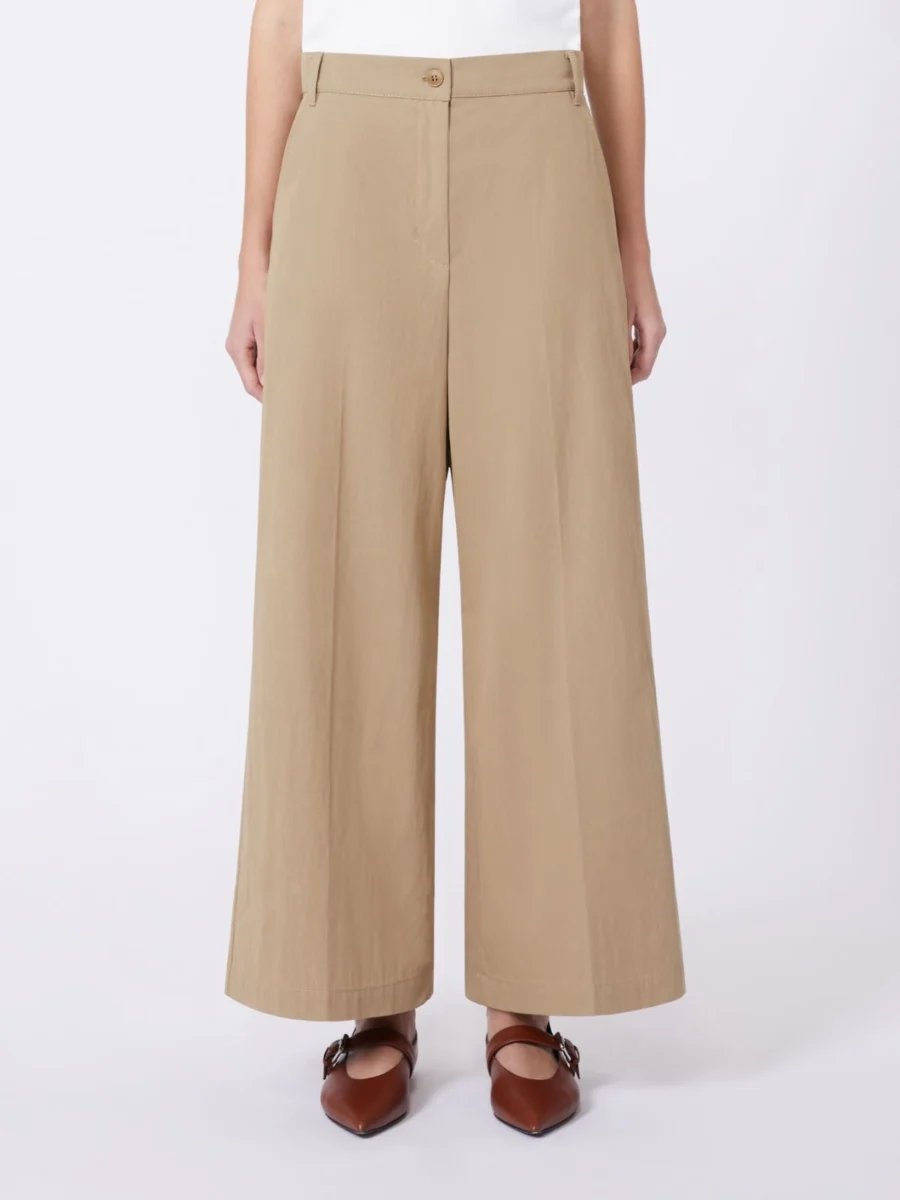 Wide-leg trousers with a cropped ankle cut and pressed pleat detail.