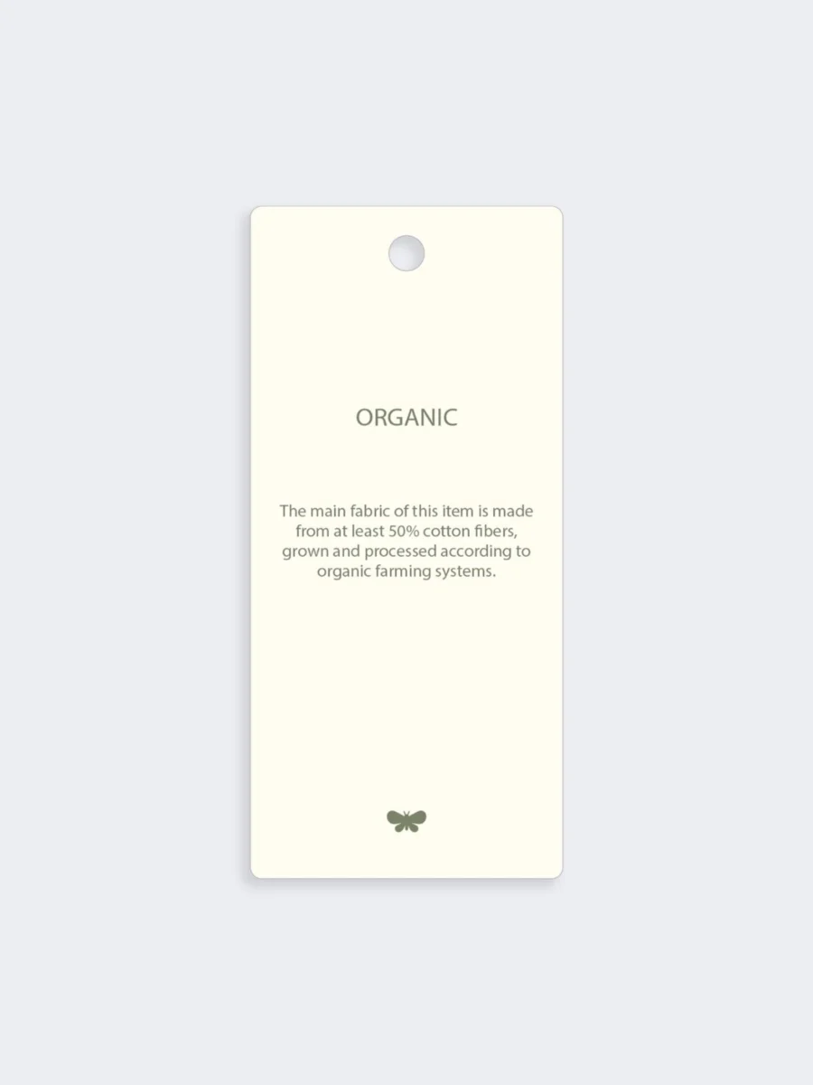 The fabric of this item is made from at least 50% cotton fibers, grown and processed according to organic farming systems