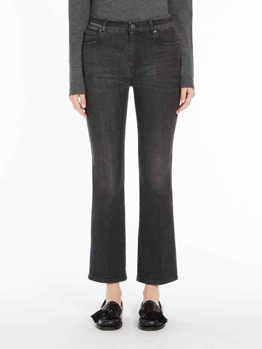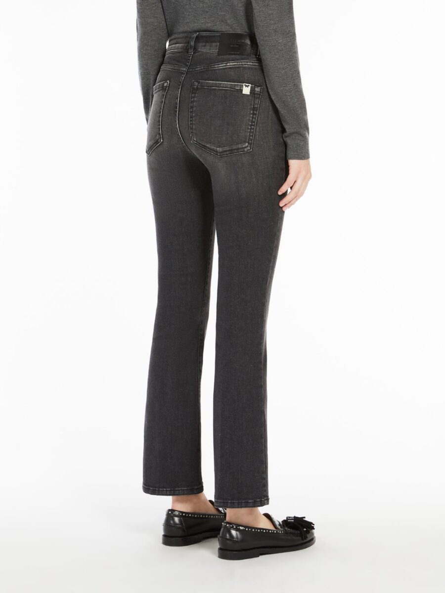 Cropped jeans in ultra-comfortable denim fabric. The 5-pocket model boasts a slim leg that flares slightly at the hem, in addition to belt loops at the waist, metal rivets and branded butterfly logo detail on the rear pocket. Fly-covered zip and button fastening. This garment comprises natural fibres that are grown according to the organic farming standards and processed to preserve the garment’s long-term quality, softness and durability. The fabric is treated using low environmental impact processes which do not use pumice stones and by replacing the traditional immersion wash with Nano Bubble technology; a special nebulisation process that significantly reduces water consumption. The products used are controlled in accordance with the guidelines regarding the impact of chemical substances on the environment.
