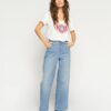 Modern wide-leg jeans with a flattering high-rise waist. Crafted from soft, stretchy denim that holds its shape while providing comfort. The clean wash and effortless silhouette make them a timeless addition to any denim collection.