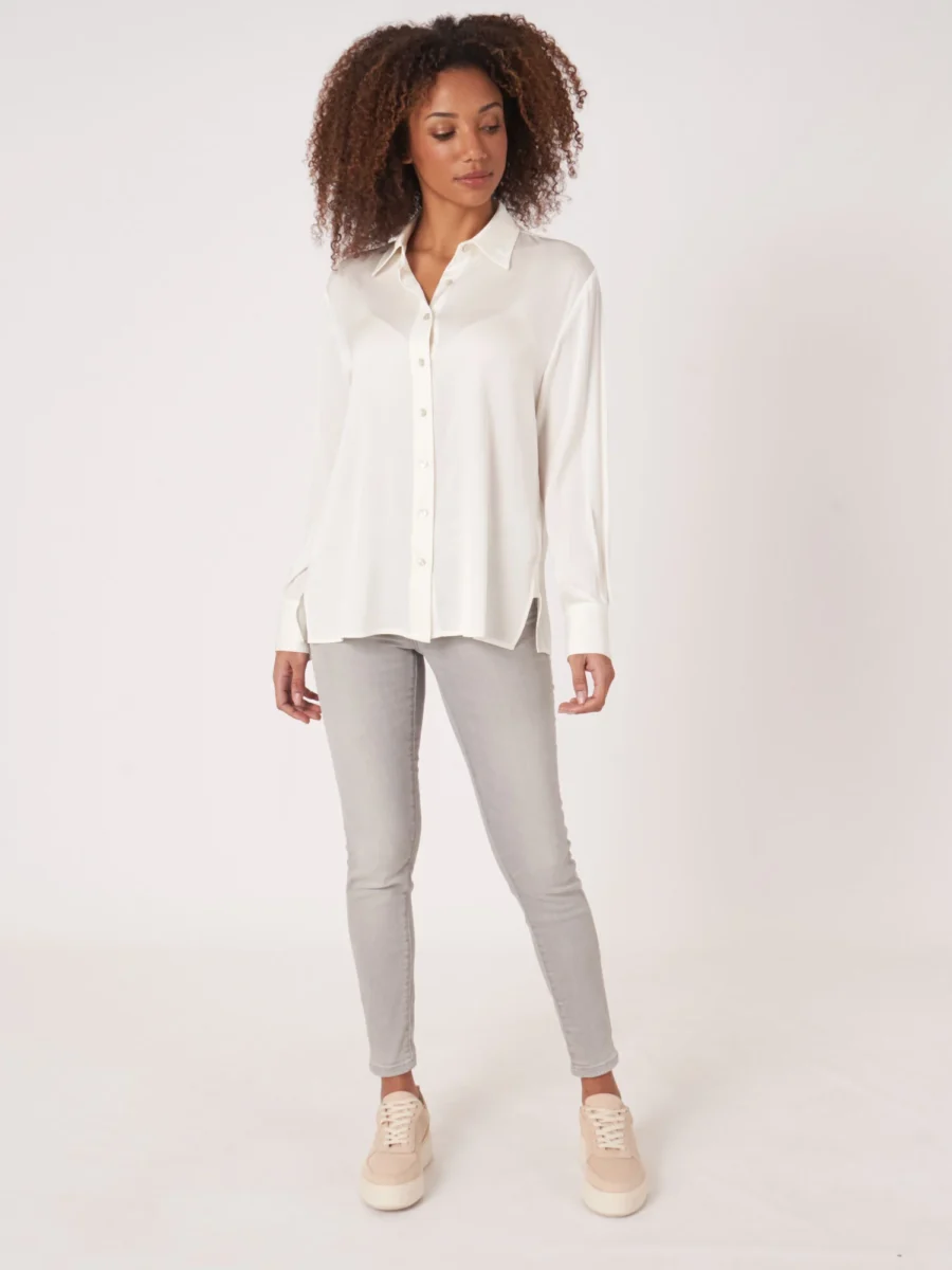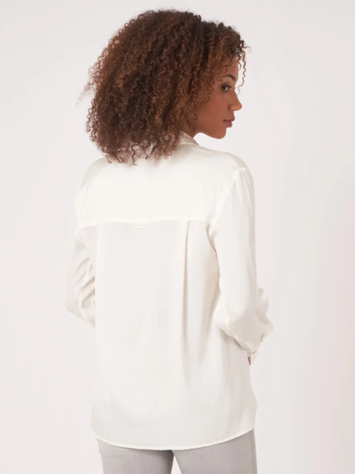 Women’s chemise en soie avec poche poitrine et fentes latérales – REPEAT