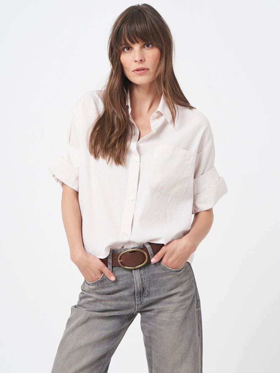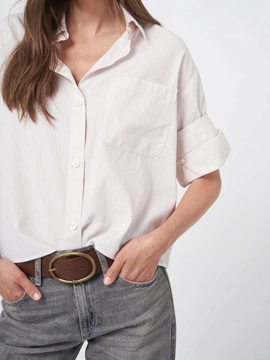 Women’s chemisier rayé avec manchette retroussée – REPEAT
