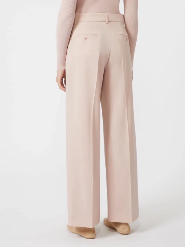 High-cut waistband with a fly-covered zip and hook-and-bar fastening